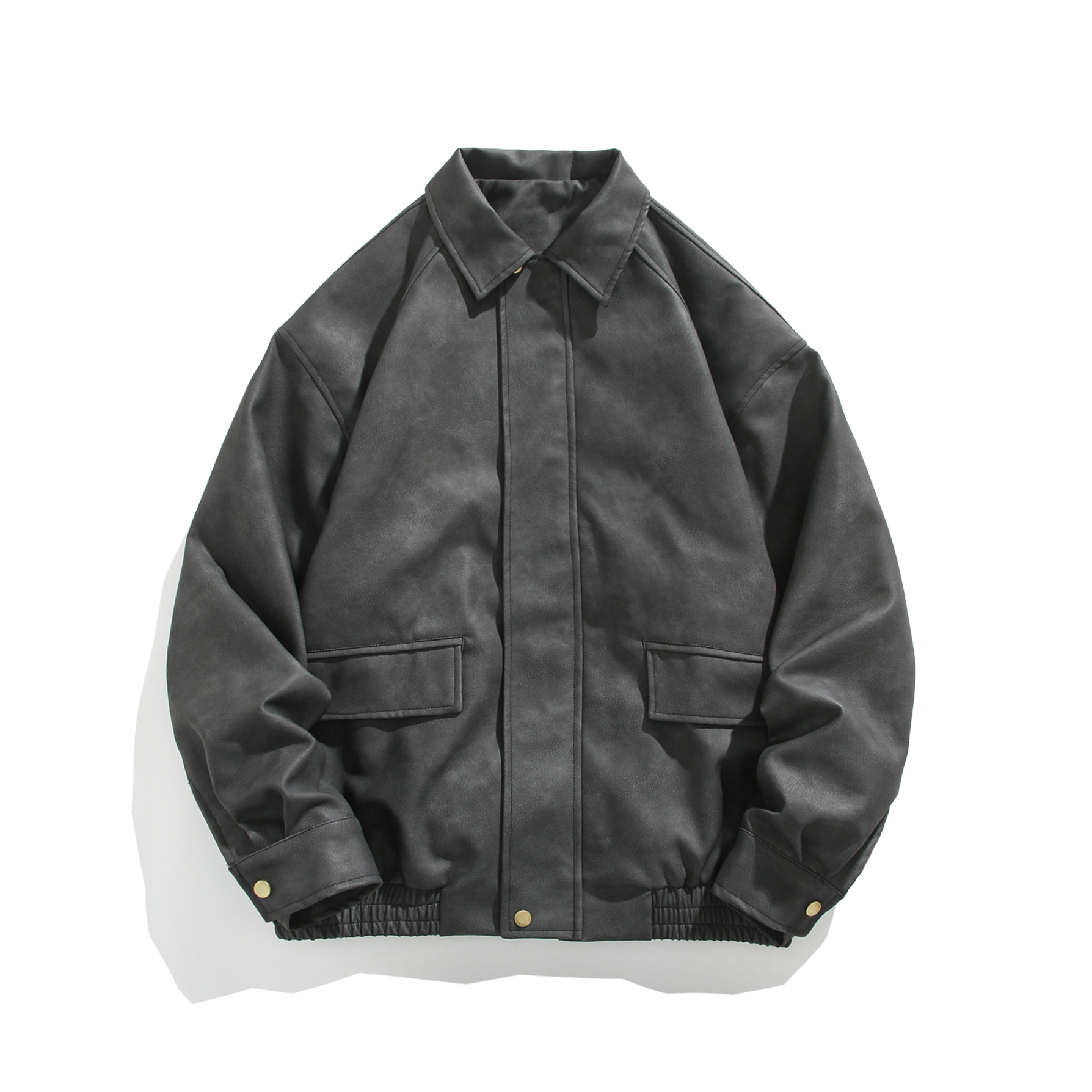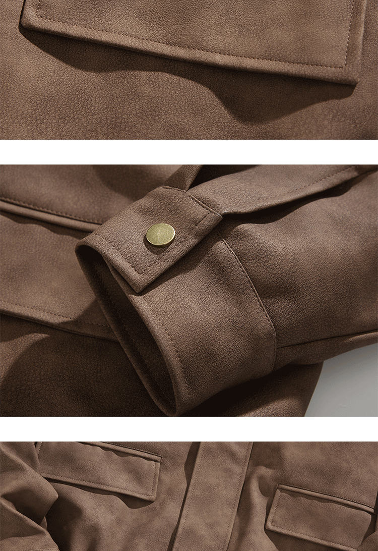 미국식 다크 브라운 PU 가죽 자켓 남자의 봄과 가을 착용 틈새 레트로 스타일 느슨한 캐주얼 어깨 패드 에비에이터 재킷