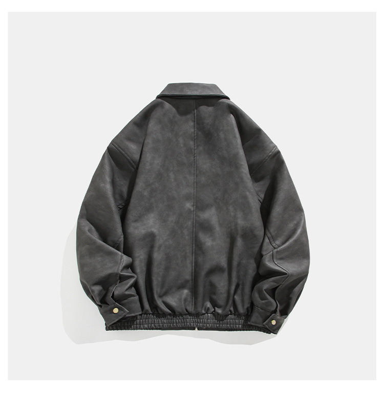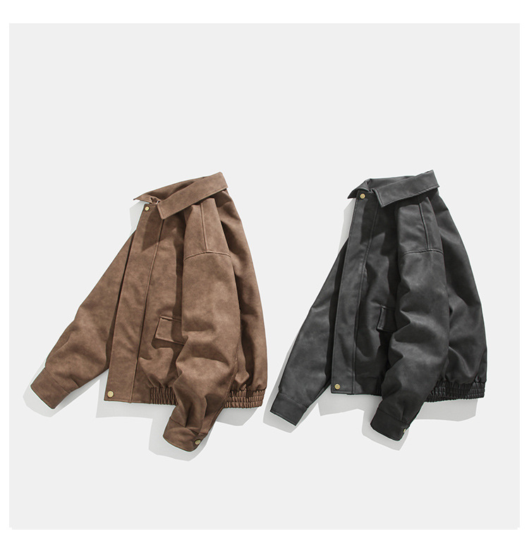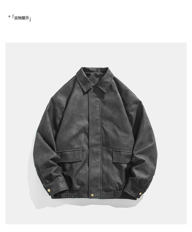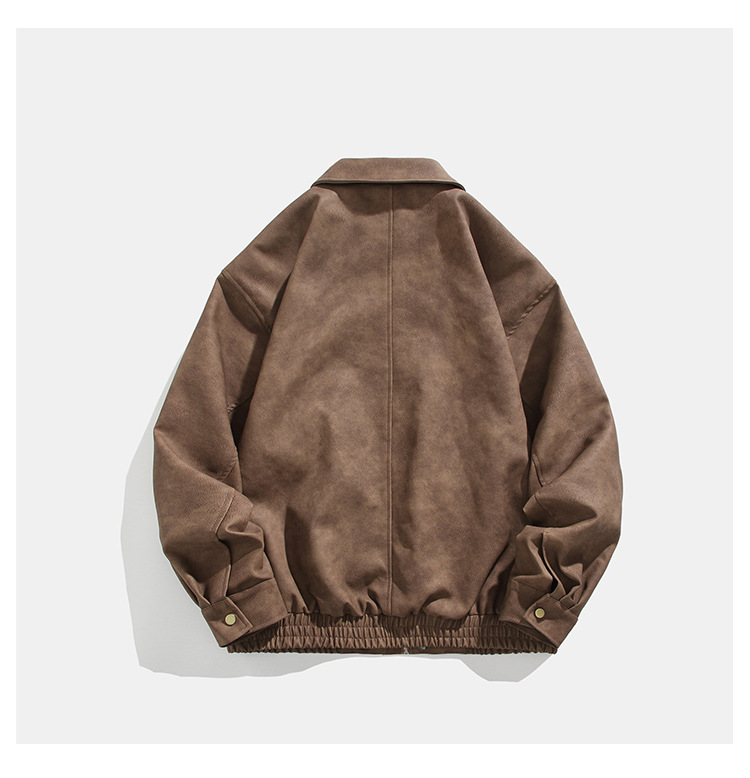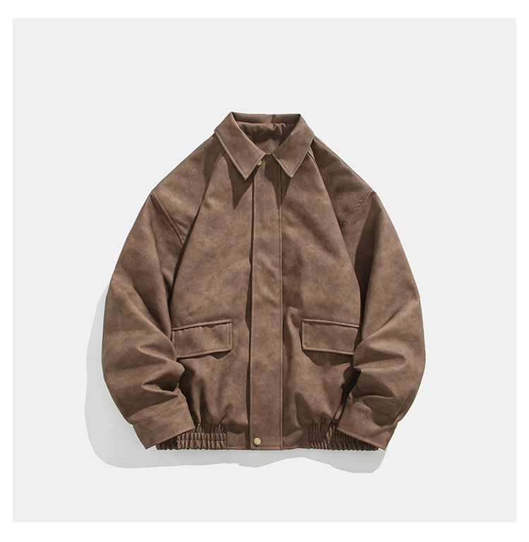 미국식 다크 브라운 PU 가죽 자켓 남자의 봄과 가을 착용 틈새 레트로 스타일 느슨한 캐주얼 어깨 패드 에비에이터 재킷스토어 가기