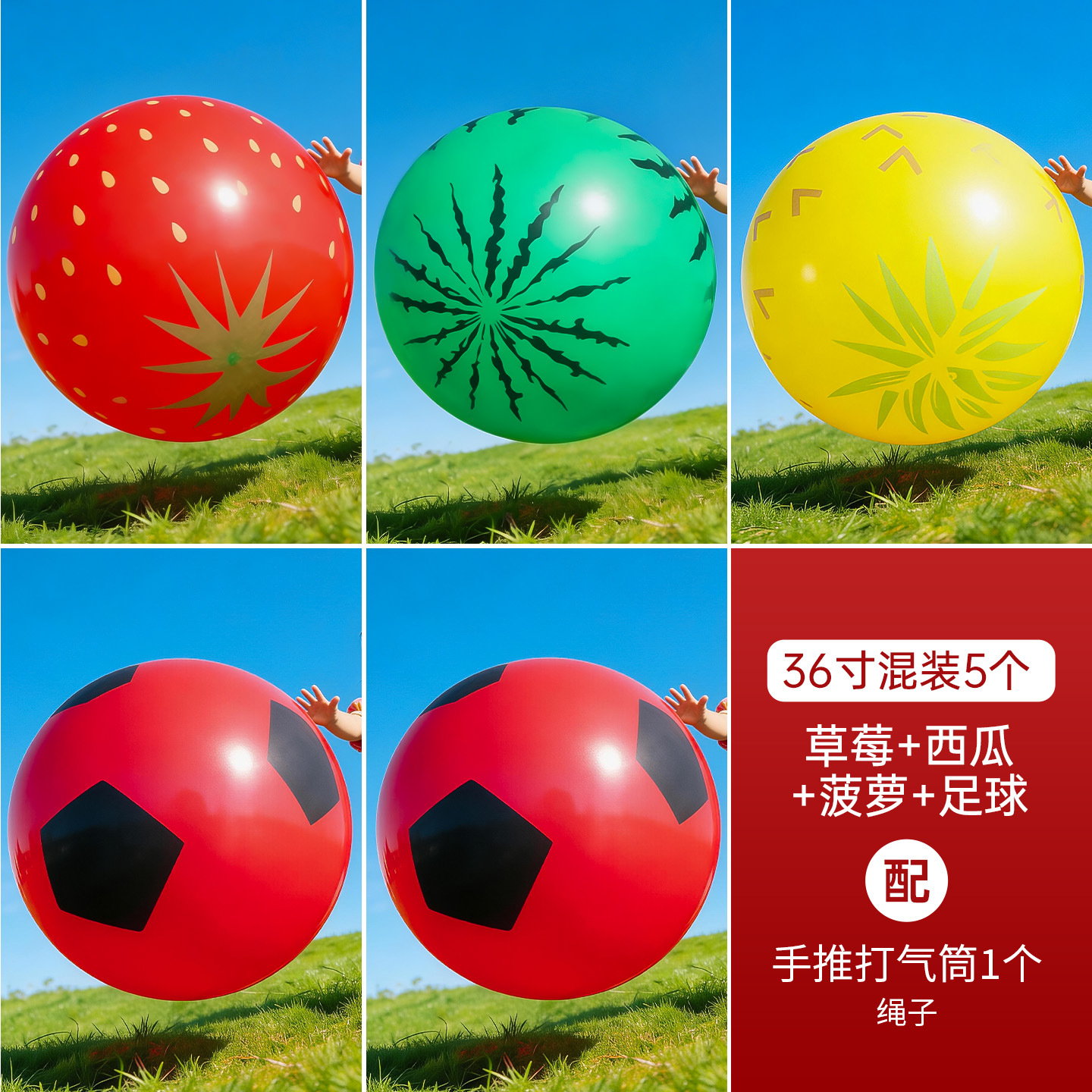 • 36inch 두꺼운 [딸기+수박+파인애플+축구공+축구공] 5개 혼합팩 (펌프+10m 로프 포함)