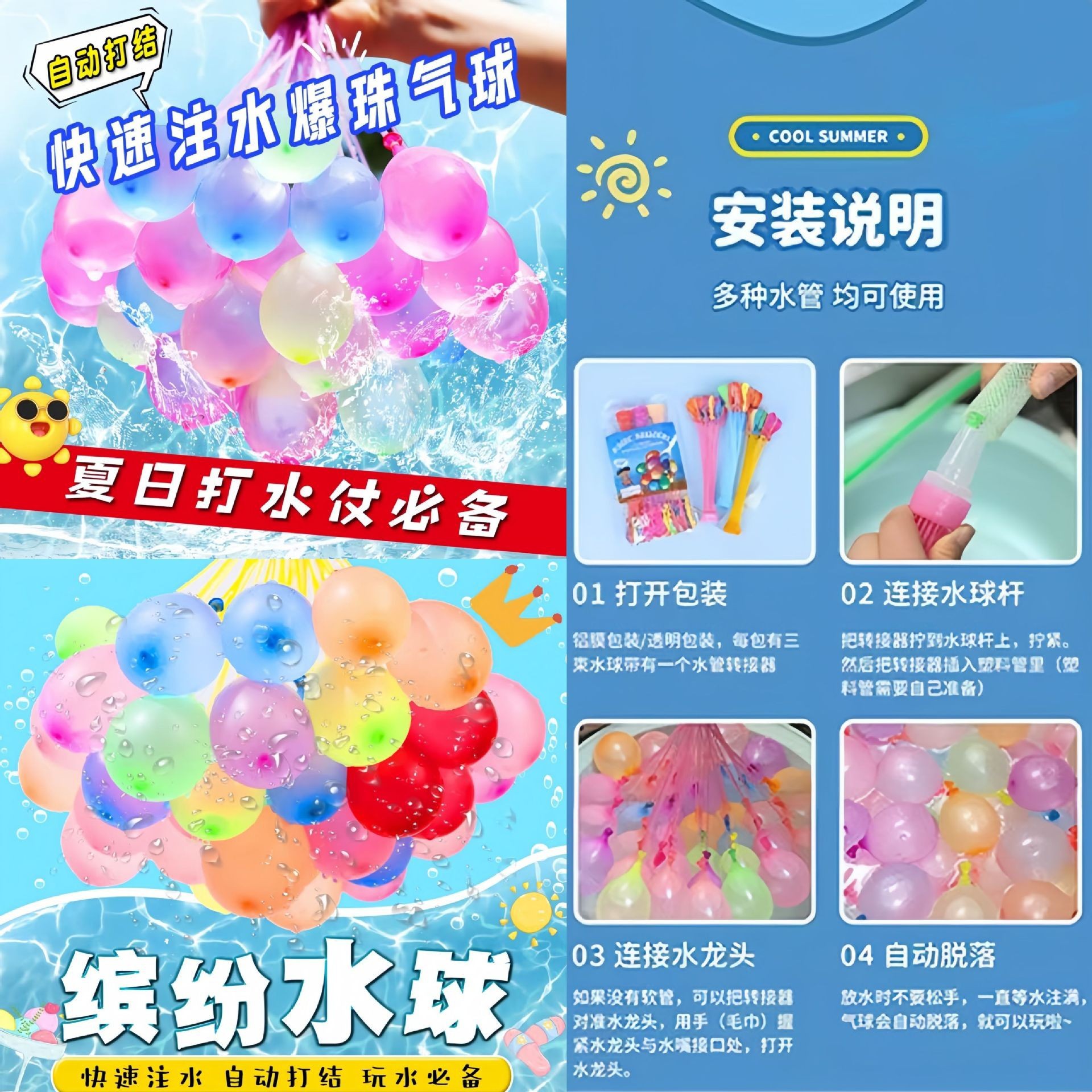 물풍선, 빠르게 물을 채우는 물풍선, 자동 매듭, 여름 물놀이, 물싸움, 어린이 장난감, 물풍선, 물폭탄 판매대