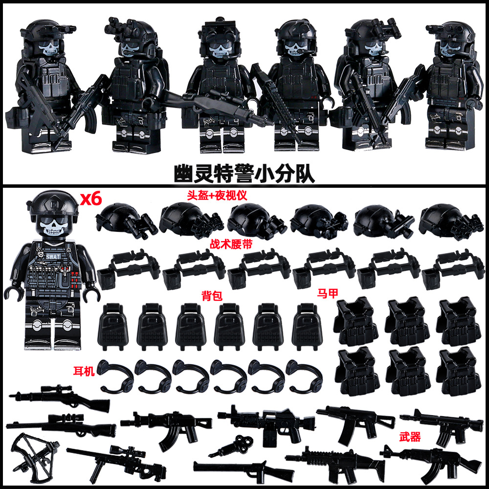 크로스 국경 AliExpress 호환 레고 군사 남자 붉은 눈 유령 특수 경찰 특수 군인 남자 빌딩 블록 장난감스토어 가기