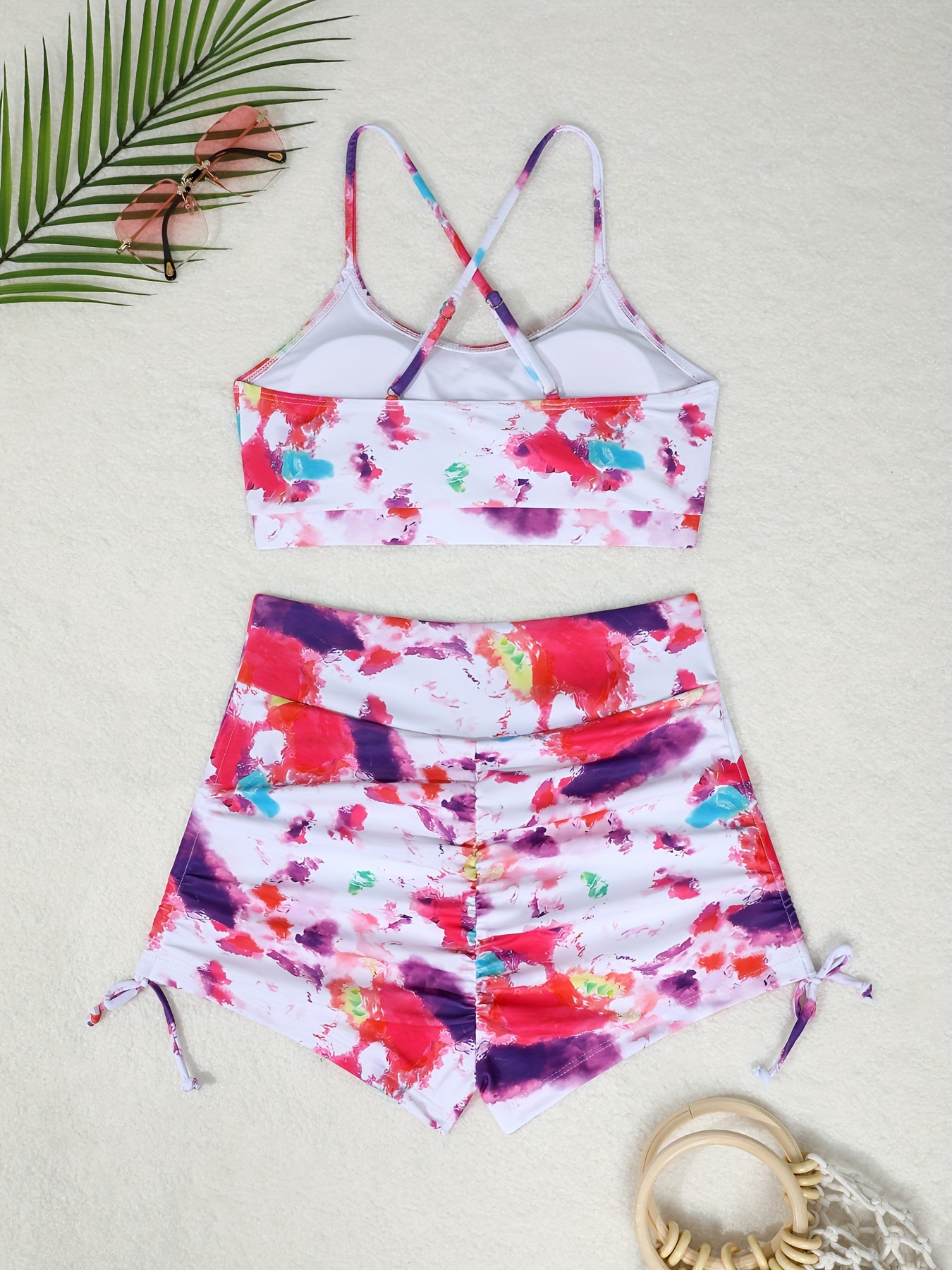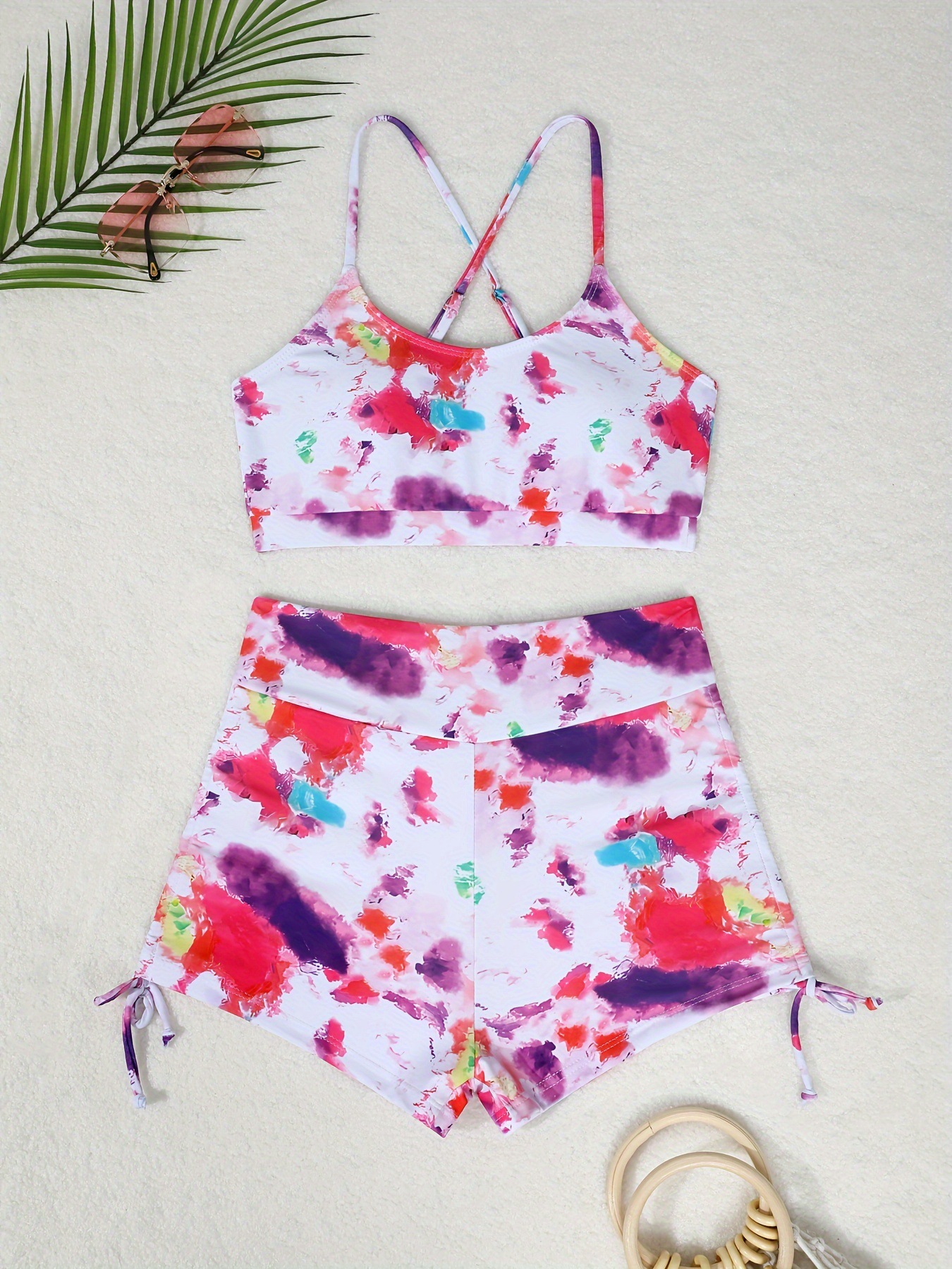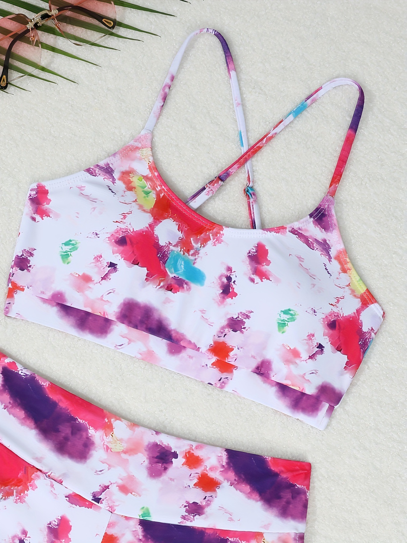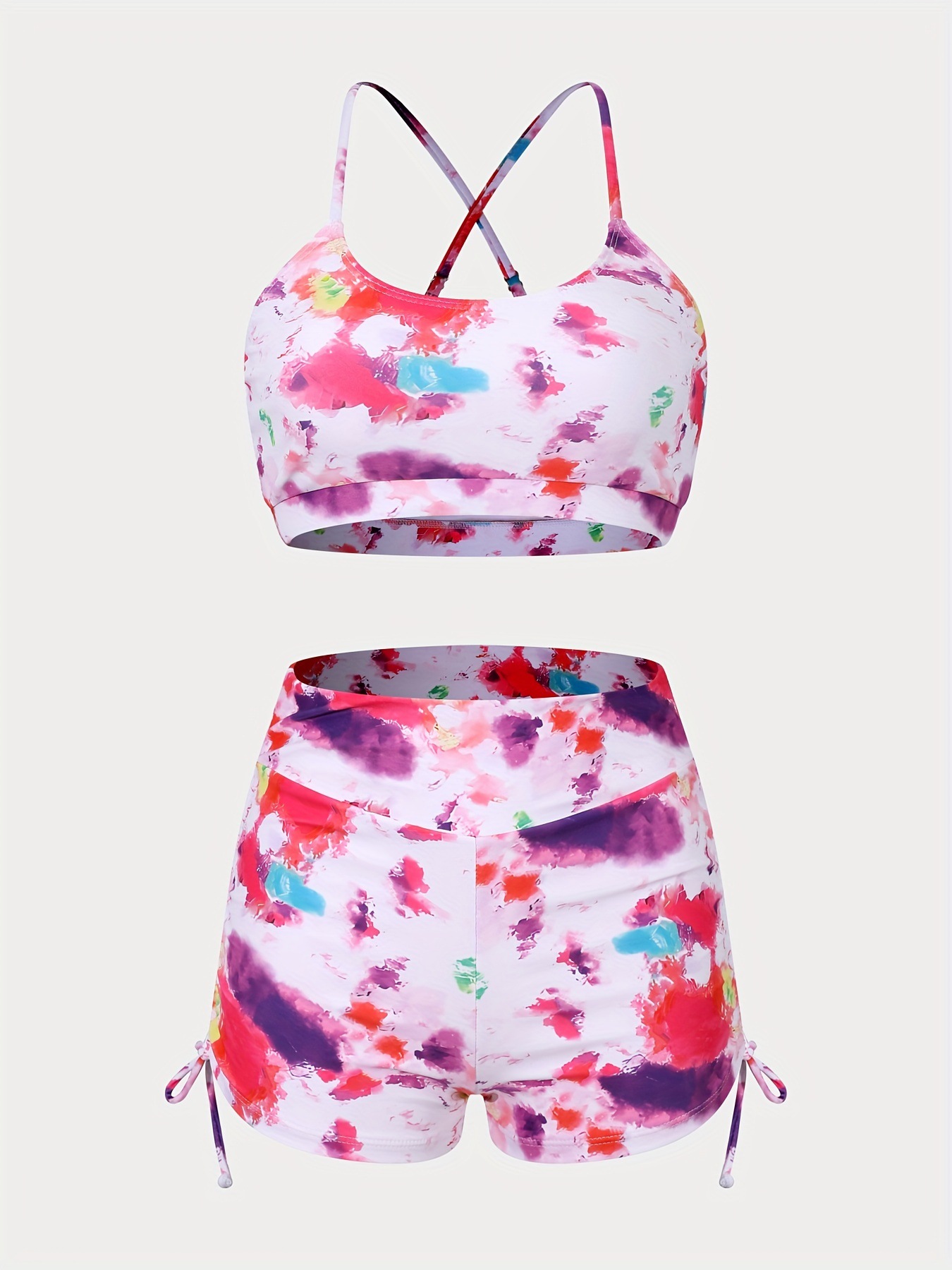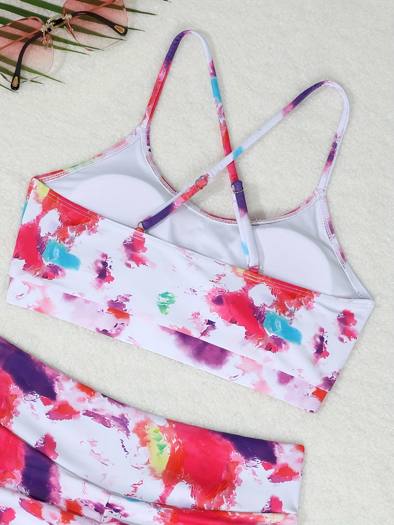 2024 아마존 대외 무역 폭발 스포츠 수영복 가슴 패드 여성용 스플릿 섹시 비키니 투피스 세트