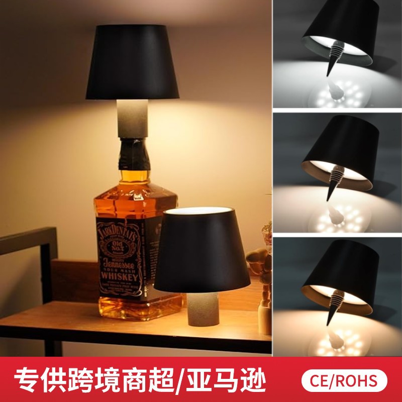 국경 주도 창조적 인 와인 헤드 램프 임베디드 클린 바 레스토랑 이동식 충전 RGB 디밍 장식 와인 병 테이블 램프