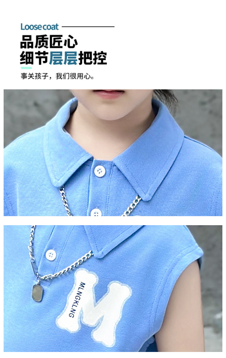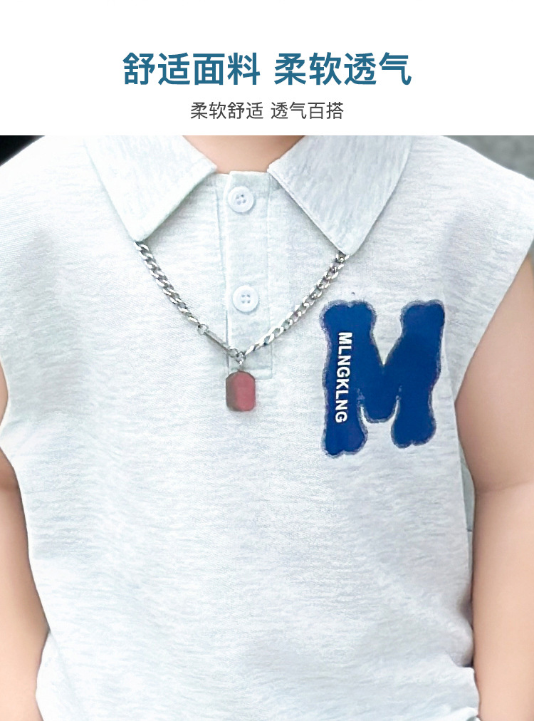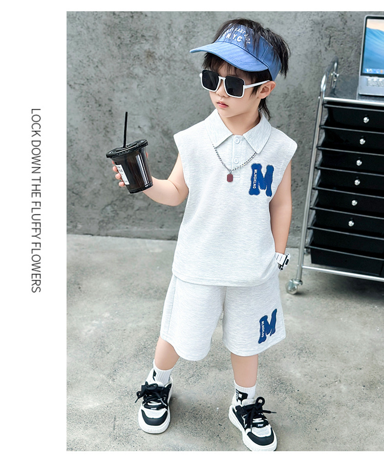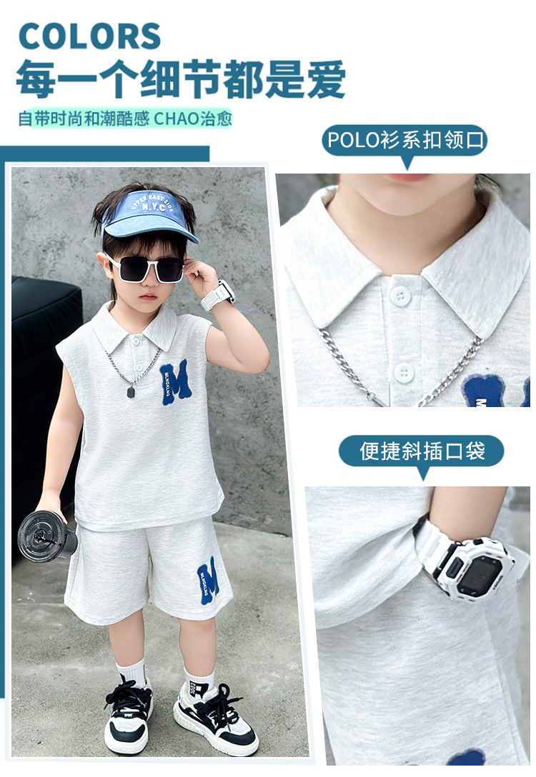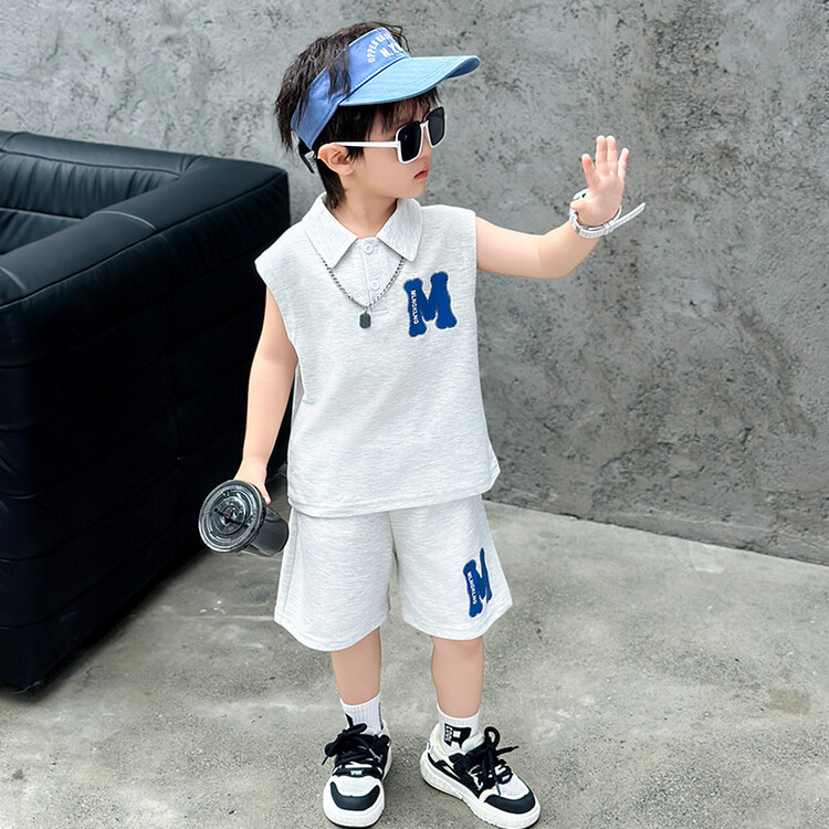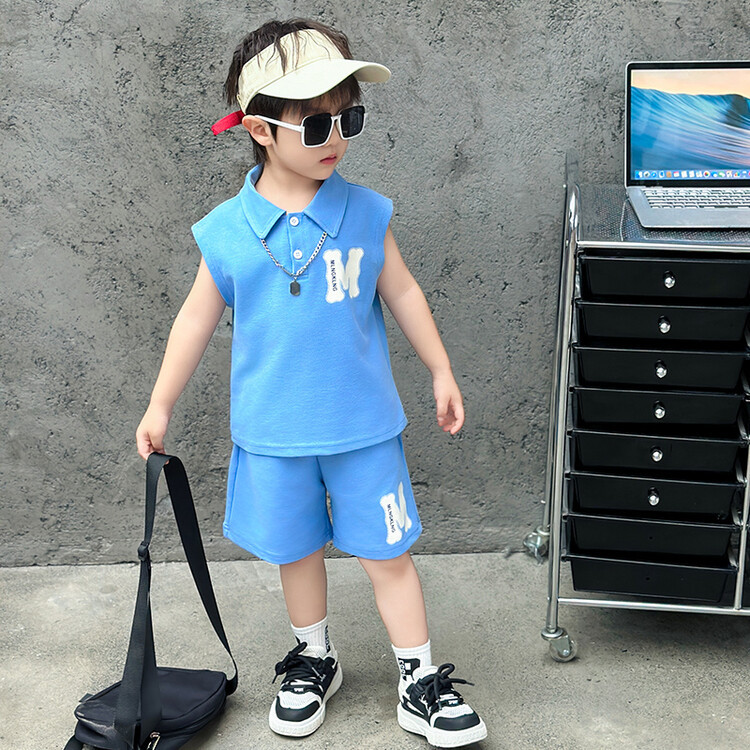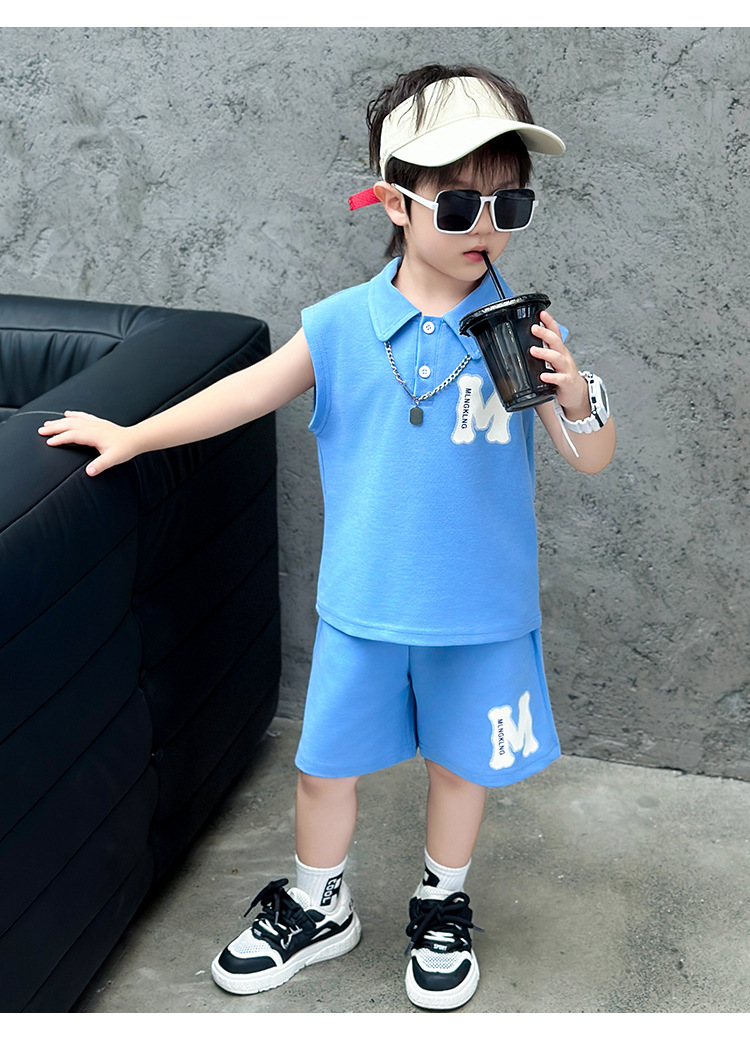 남학생 옷깃 민소매 조끼 세트 2024 년 여름 새 어린이 잘 생긴 캐주얼 투피스 아기 옷 트렌디스토어 가기
