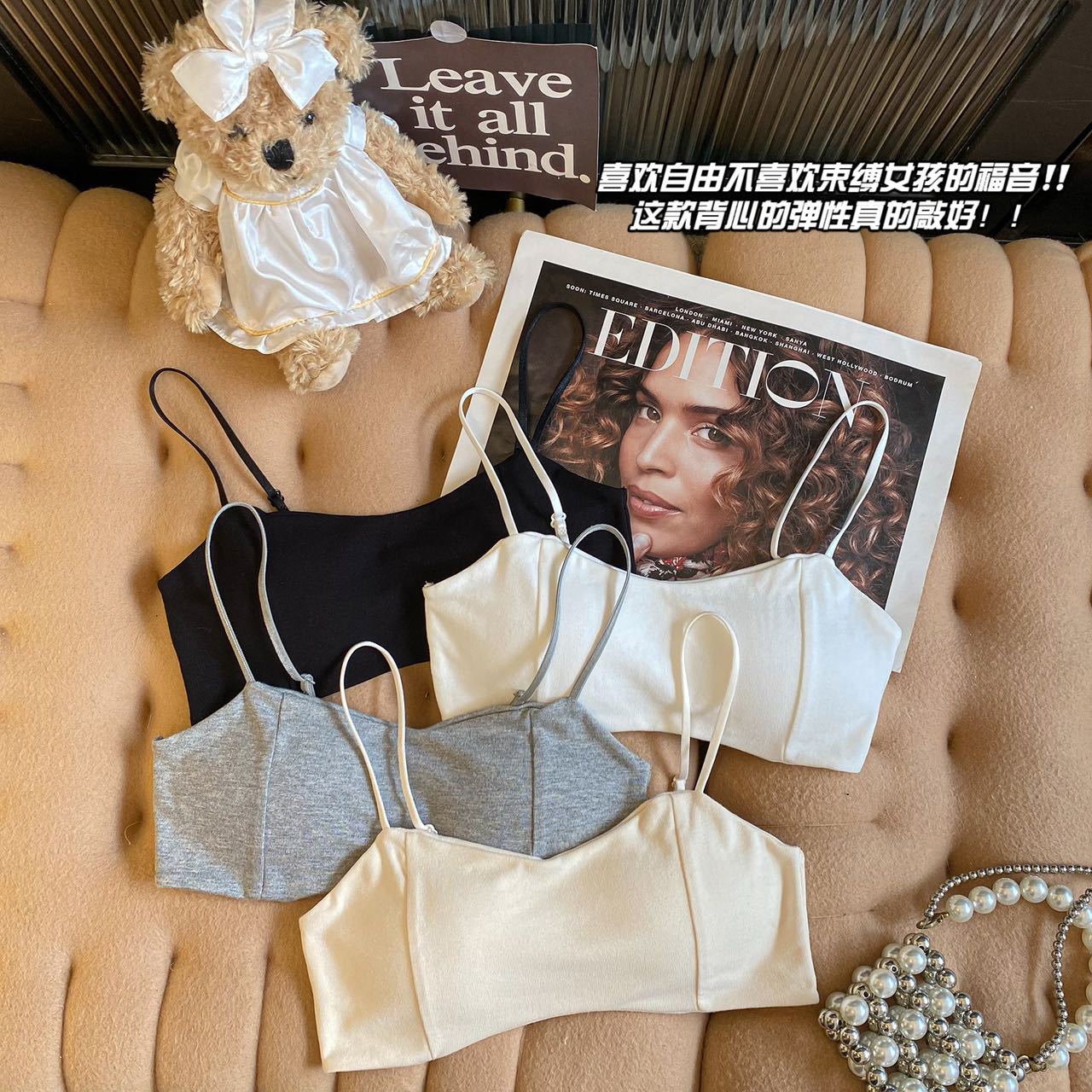 섹시한 스파이스 소녀 짧은 슬링 조끼 벨트 가슴 패드 내부 입고 외부 아름다운 등 얇은 어깨 스트랩 민소매 최고 가슴 포장 튜브 탑스토어 가기