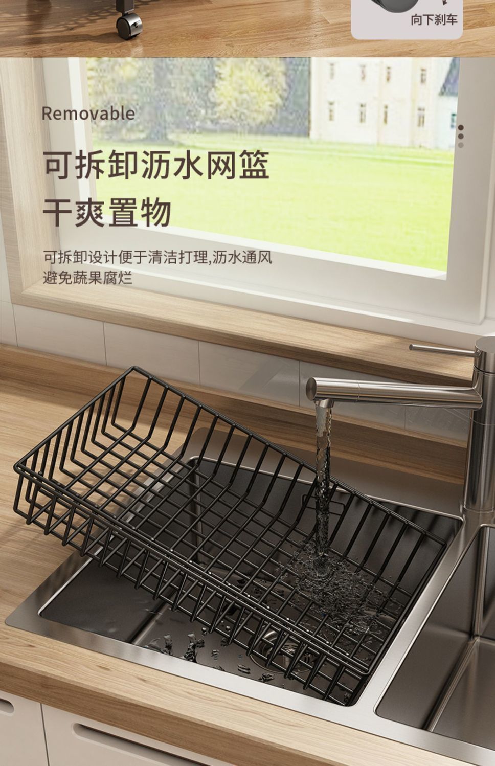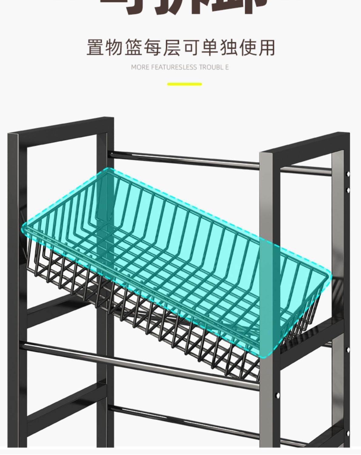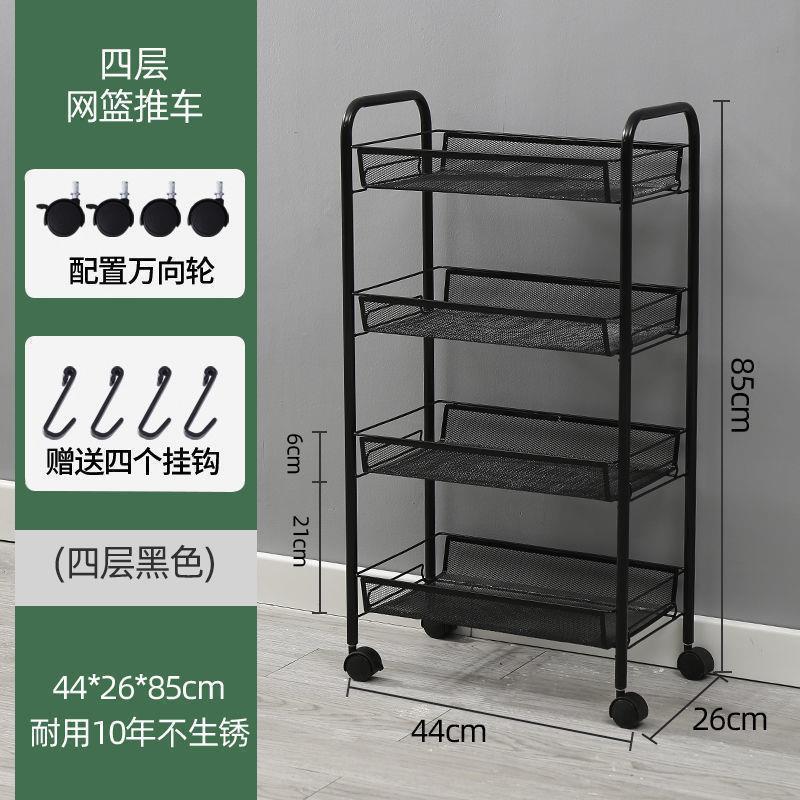 • 클래식 블랙 - 4단 메쉬 바구니 카트 - 프리 후크