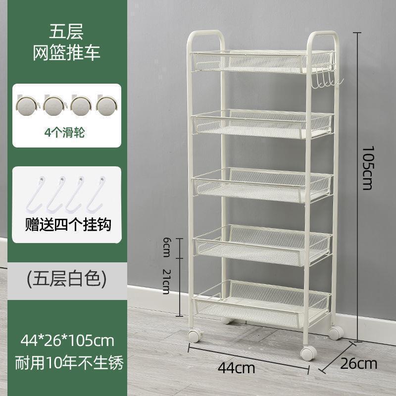 • 아이보리 화이트-5단 메쉬바구니 트롤리-프리후크