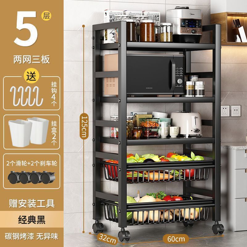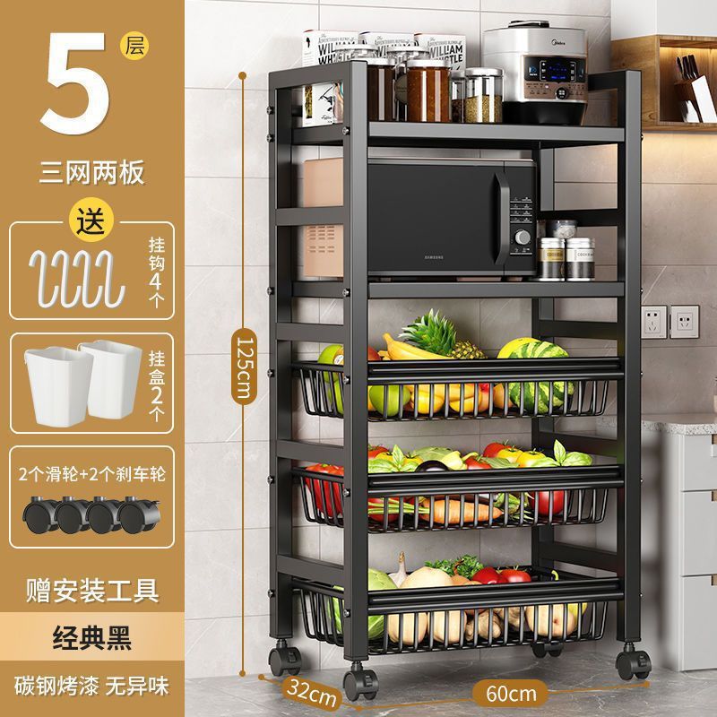 주방 보관 랙 가정용 간단한 모바일 선반 다층 층 다기능 전자 레인지 저장 랙 과일과 야채