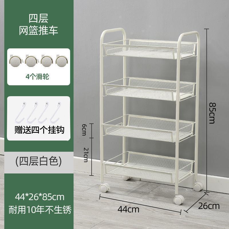 • 아이보리 화이트 - 4단 메쉬바구니 트롤리 - 프리후크