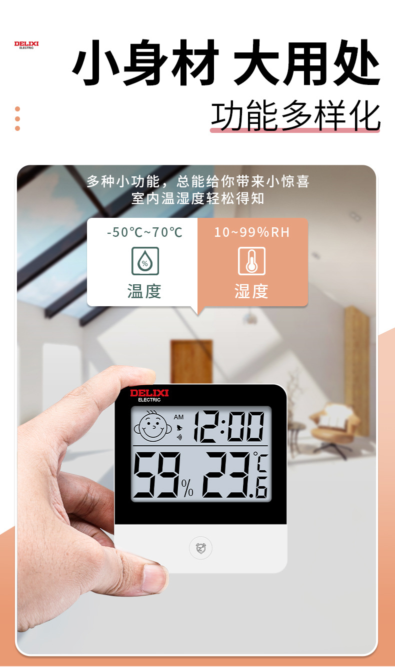 4. 多功能集成:有些电子温湿度计还可能具备记录最高/最低温湿度值、有闹钟和整点报时的功能。
