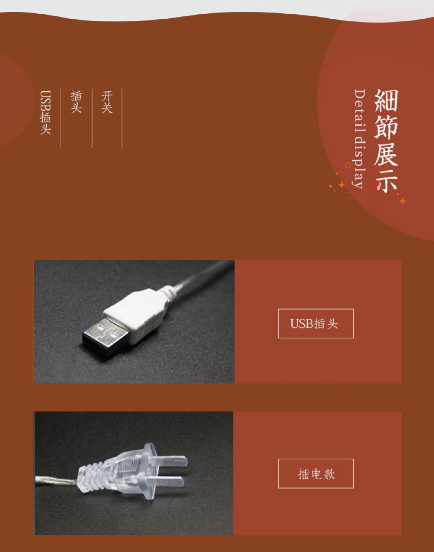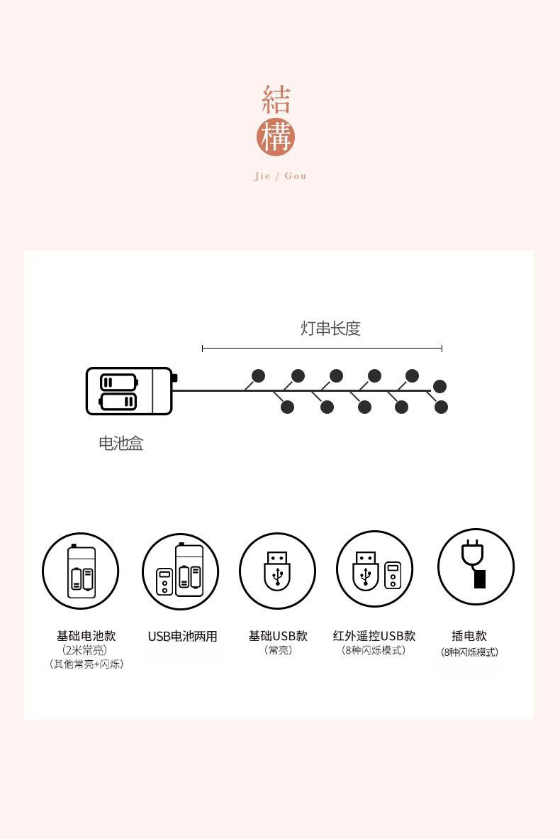 • 10 m 100 램프 플러그인 모델 (8 개의 깜박이는 모드) 시리즈로 연결할 수 있습니다.
