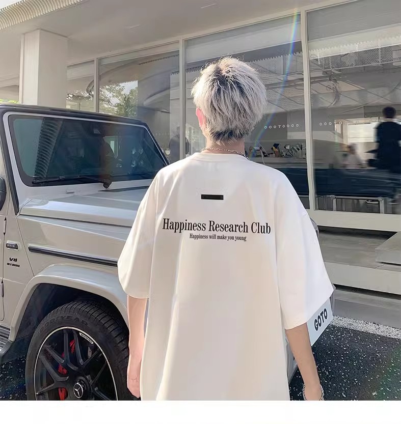 미국식 퓨어 코튼 헤비 웨이트 티셔츠 반팔 남성 여름 캐주얼 루즈 얇은 통기성 하이 스트리트 빈티지 7 점 슬리브스토어 가기