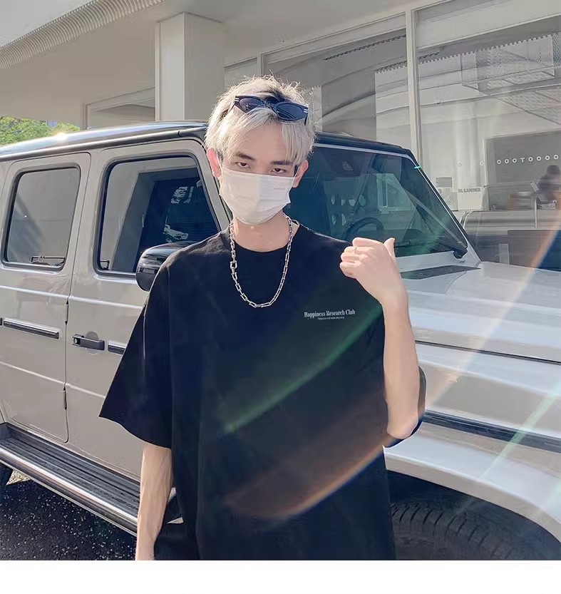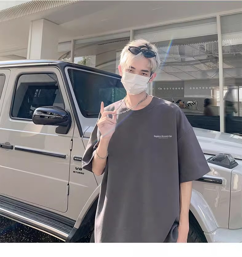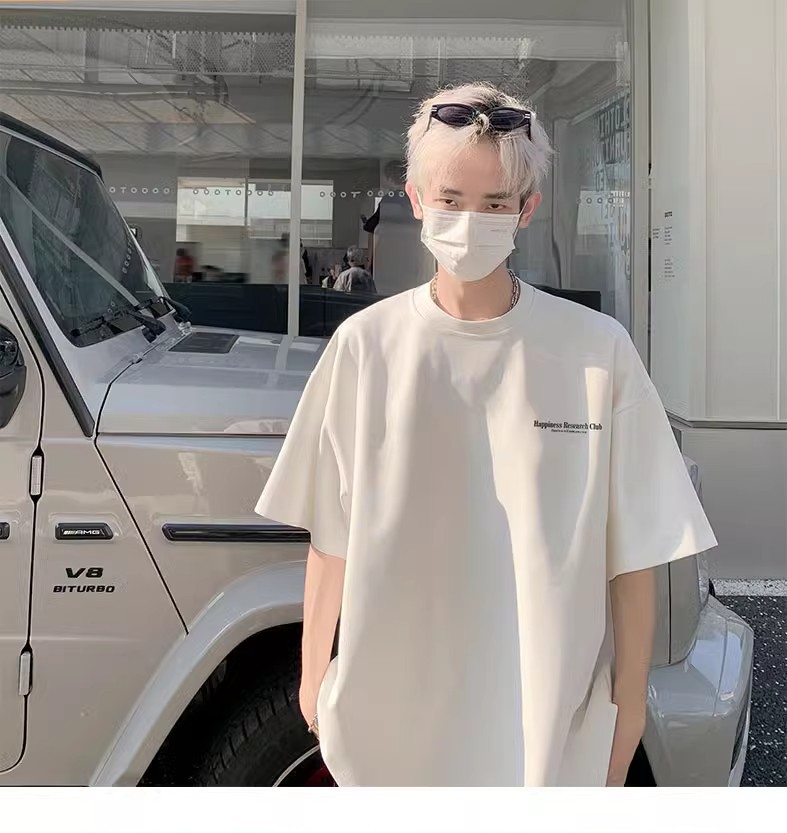 미국식 퓨어 코튼 헤비 웨이트 티셔츠 반팔 남성 여름 캐주얼 루즈 얇은 통기성 하이 스트리트 빈티지 7 점 슬리브