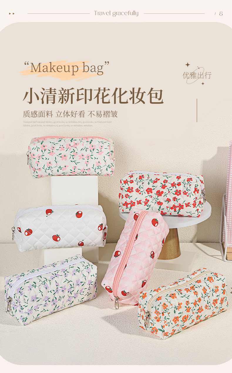 새로운 달콤한 분리형 화장품 가방, 고급스러운 꽃무늬 세면도구 가방, 휴대용 여행용 작은 꽃무늬 수납 가방