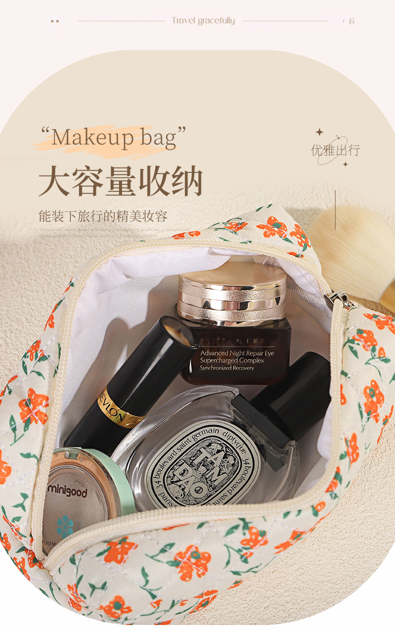 새로운 달콤한 분리형 화장품 가방, 고급스러운 꽃무늬 세면도구 가방, 휴대용 여행용 작은 꽃무늬 수납 가방스토어 가기