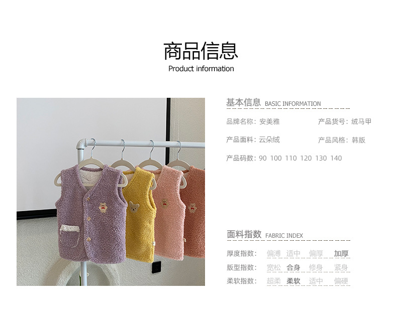 맞춤형 아동용 벨벳 조끼 90-140 도어 카디건 클라우드 벨벳 조끼 소년 소녀 제조업체 가공스토어 가기