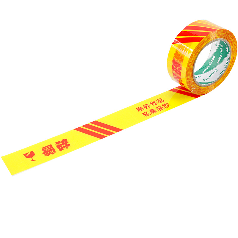 • 노란색 배경 주홍색 편지 깨지기 쉬운 경고 테이프 4.5cm;100Y