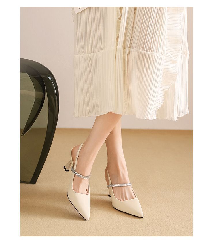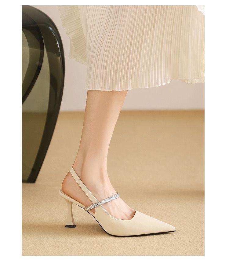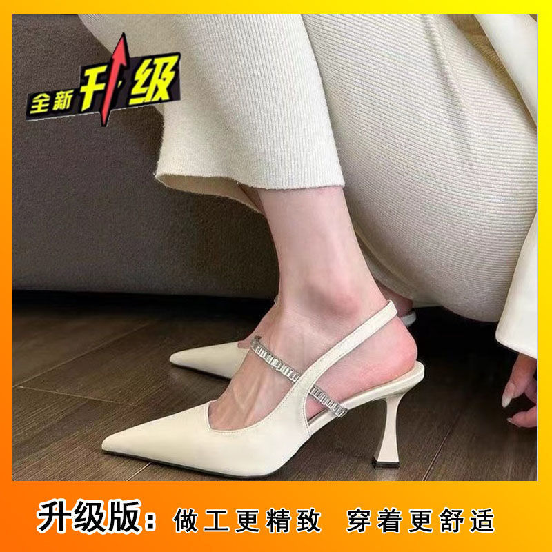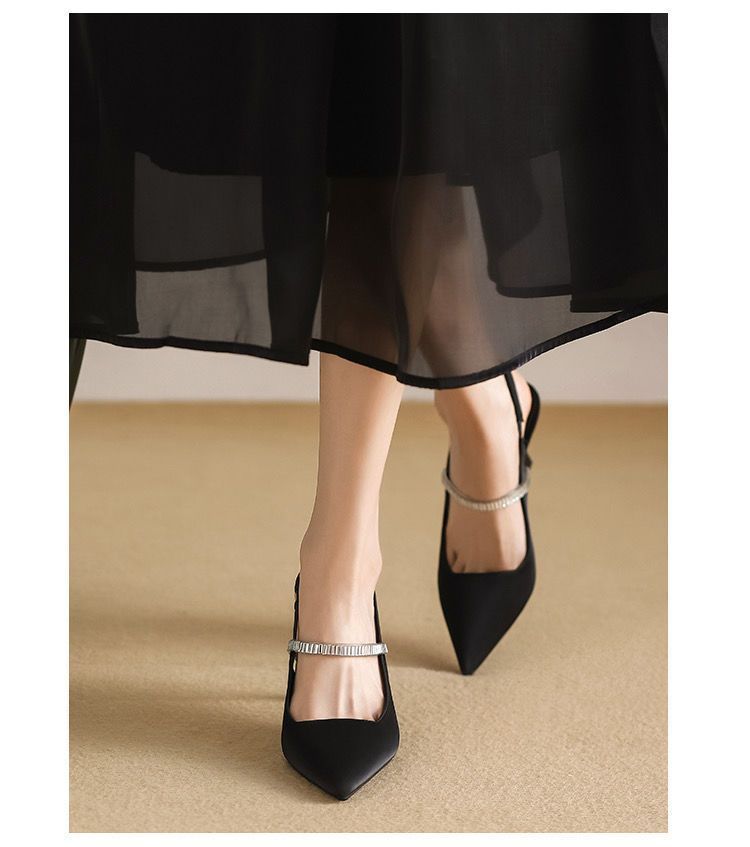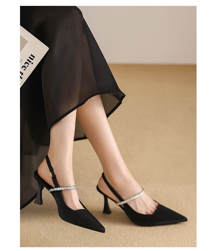 프랑스 스타일 하이 페이스 값 블랙 포인팅 하이힐 라인스톤 얇은 힐 니크 스커트 싱글 슈즈 샌들 여성용 여름 블랙스토어 가기