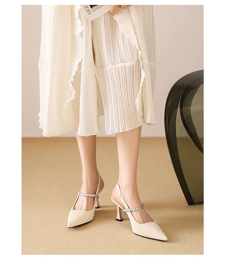 프랑스 스타일 하이 페이스 값 블랙 포인팅 하이힐 라인스톤 얇은 힐 니크 스커트 싱글 슈즈 샌들 여성용 여름 블랙