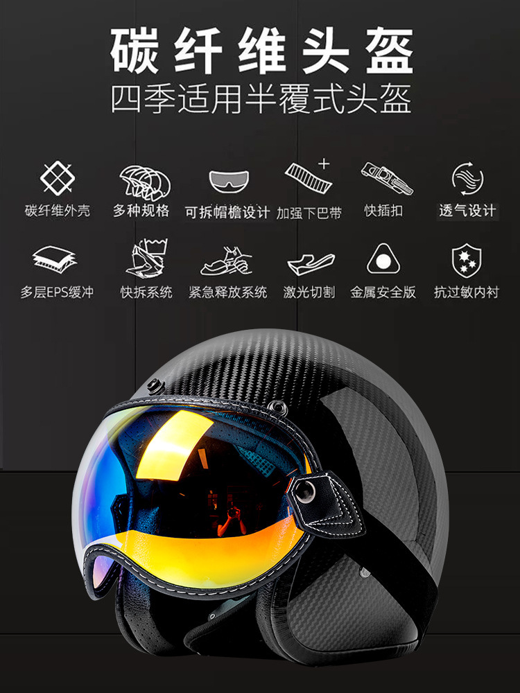 탄소 섬유 오토바이 헬멧 남녀 오토바이 헬멧 3/4 크루즈 미국 복고풍 하프 헬멧 울트라 라이트스토어 가기