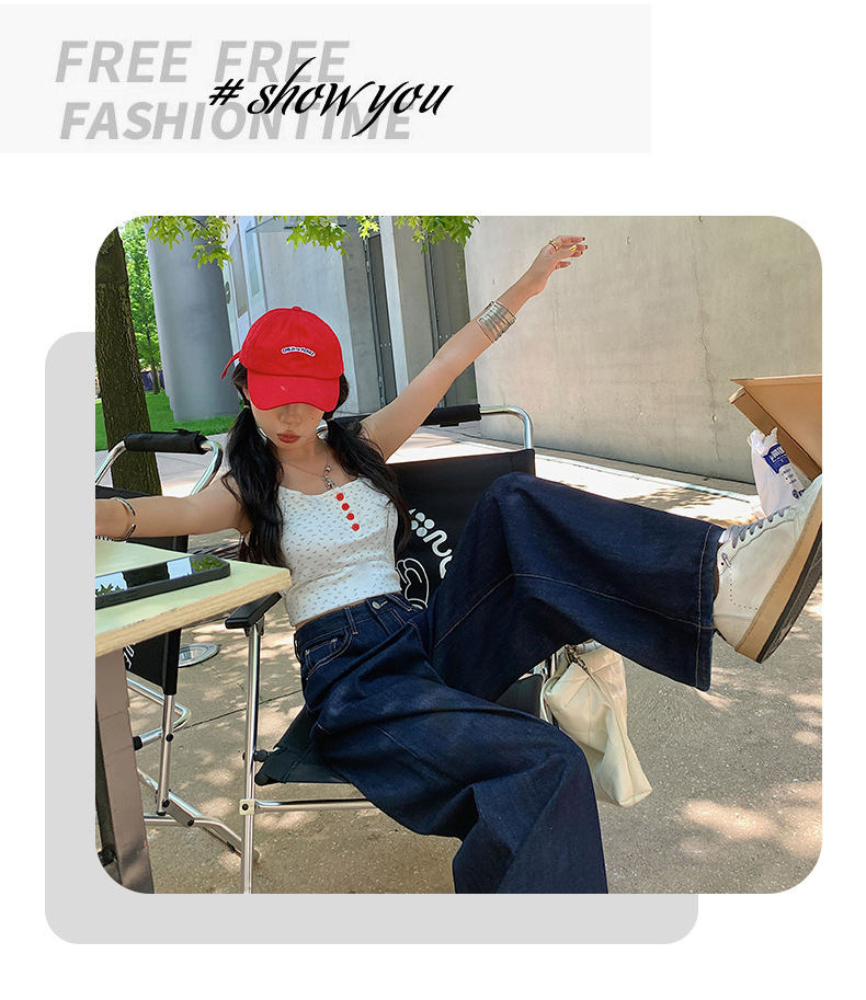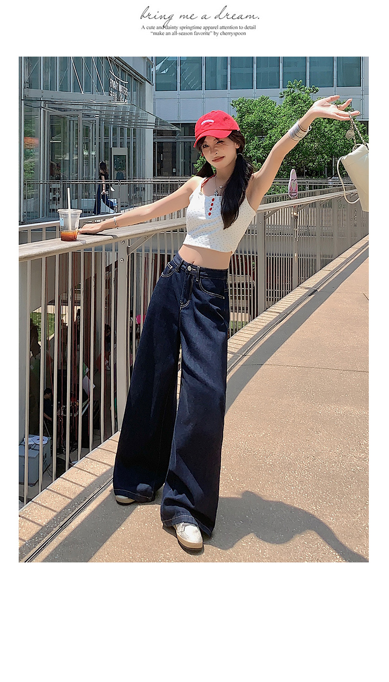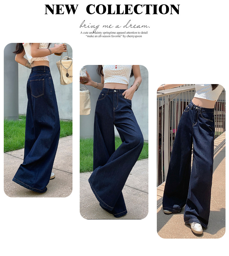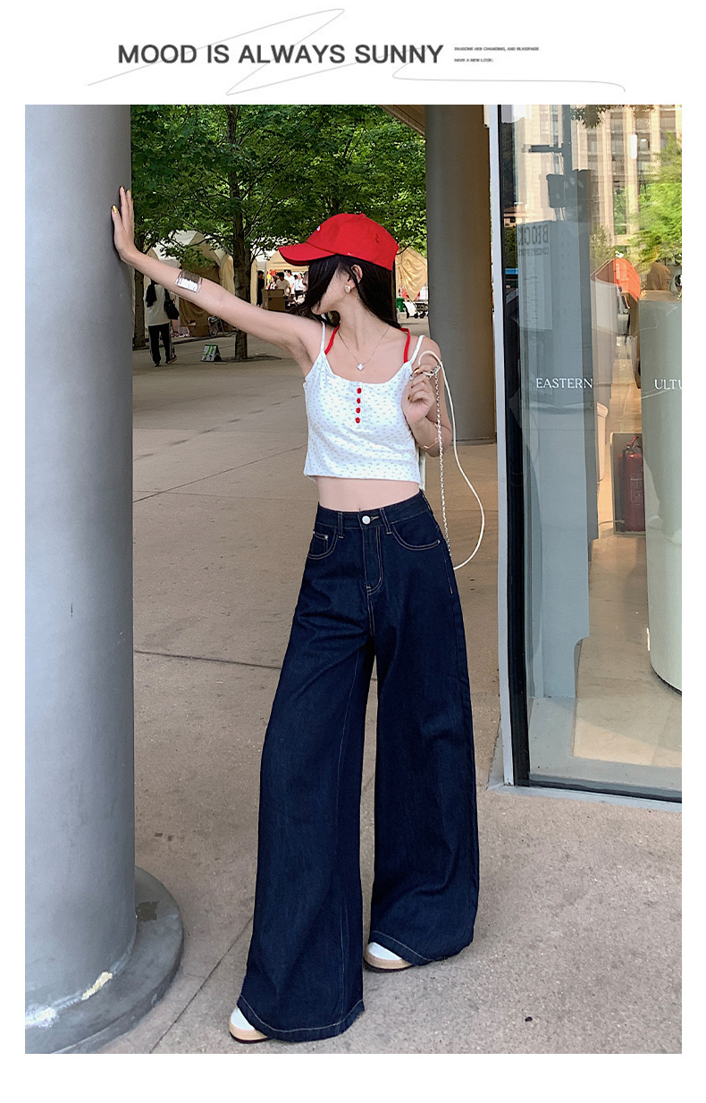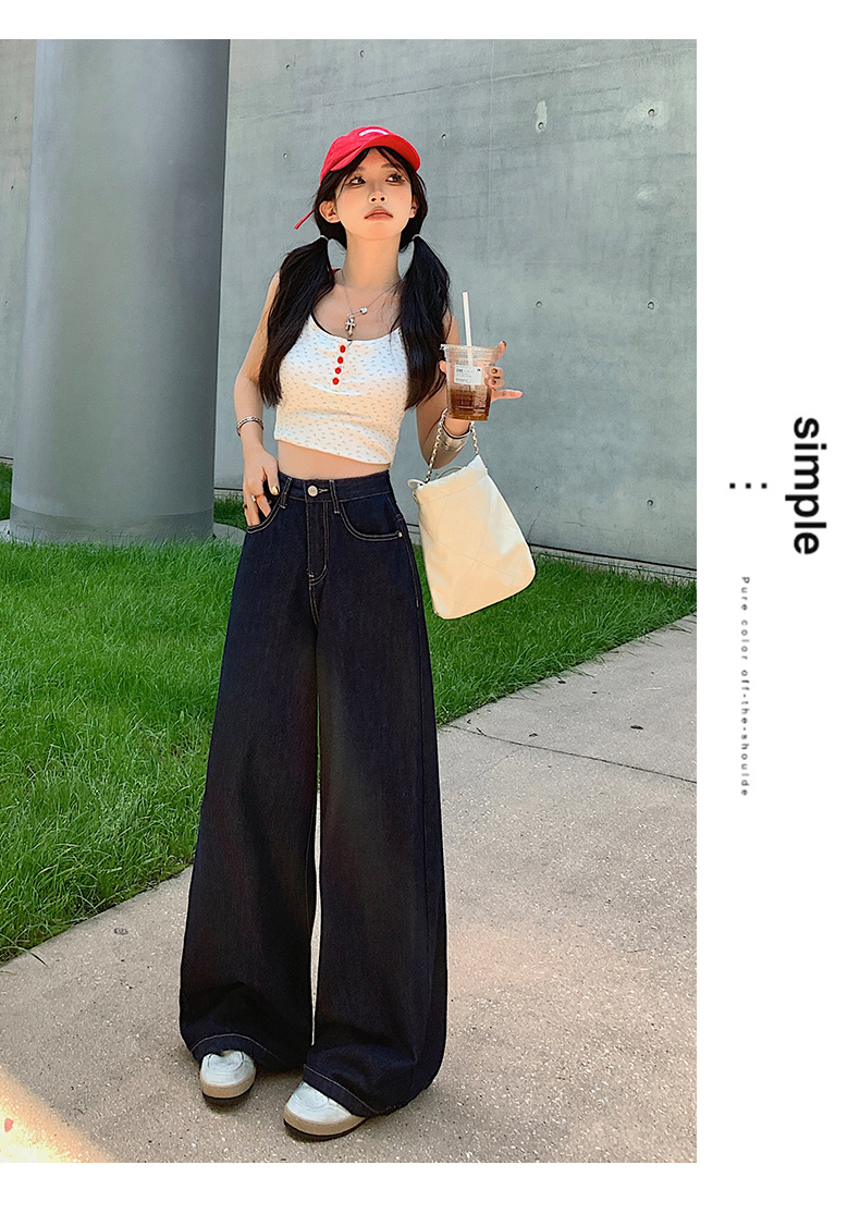【今茵】미국식 진한 파란색 와이드 레그 데님 팬츠 여성용 루즈핏 슬리밍 레이지 스타일 다용도 활용 가능한 드레이프 바지 인스타 스타일스토어 가기