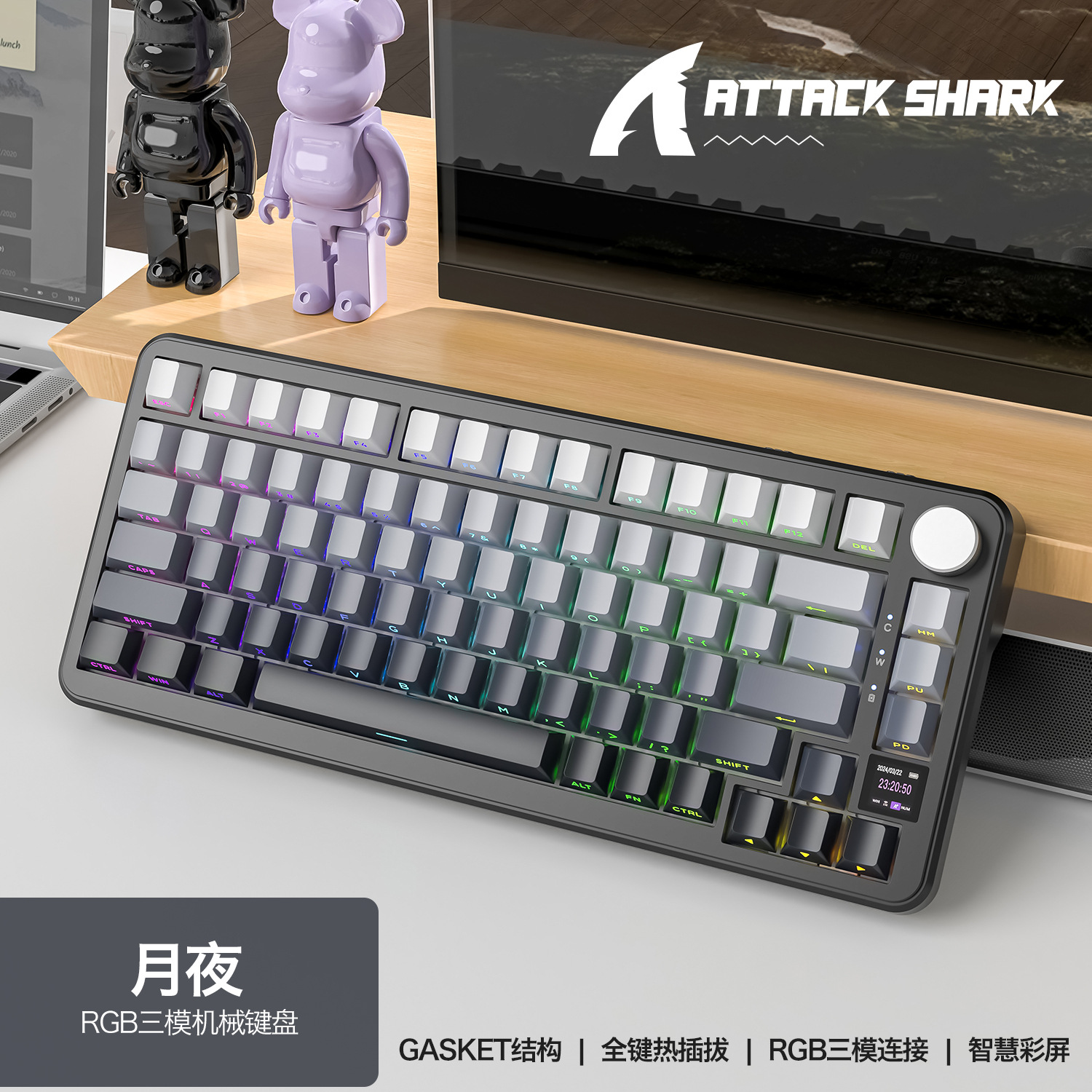 攻击鲨X85PRO带屏RGB三模无线蓝牙热插拔机械键盘