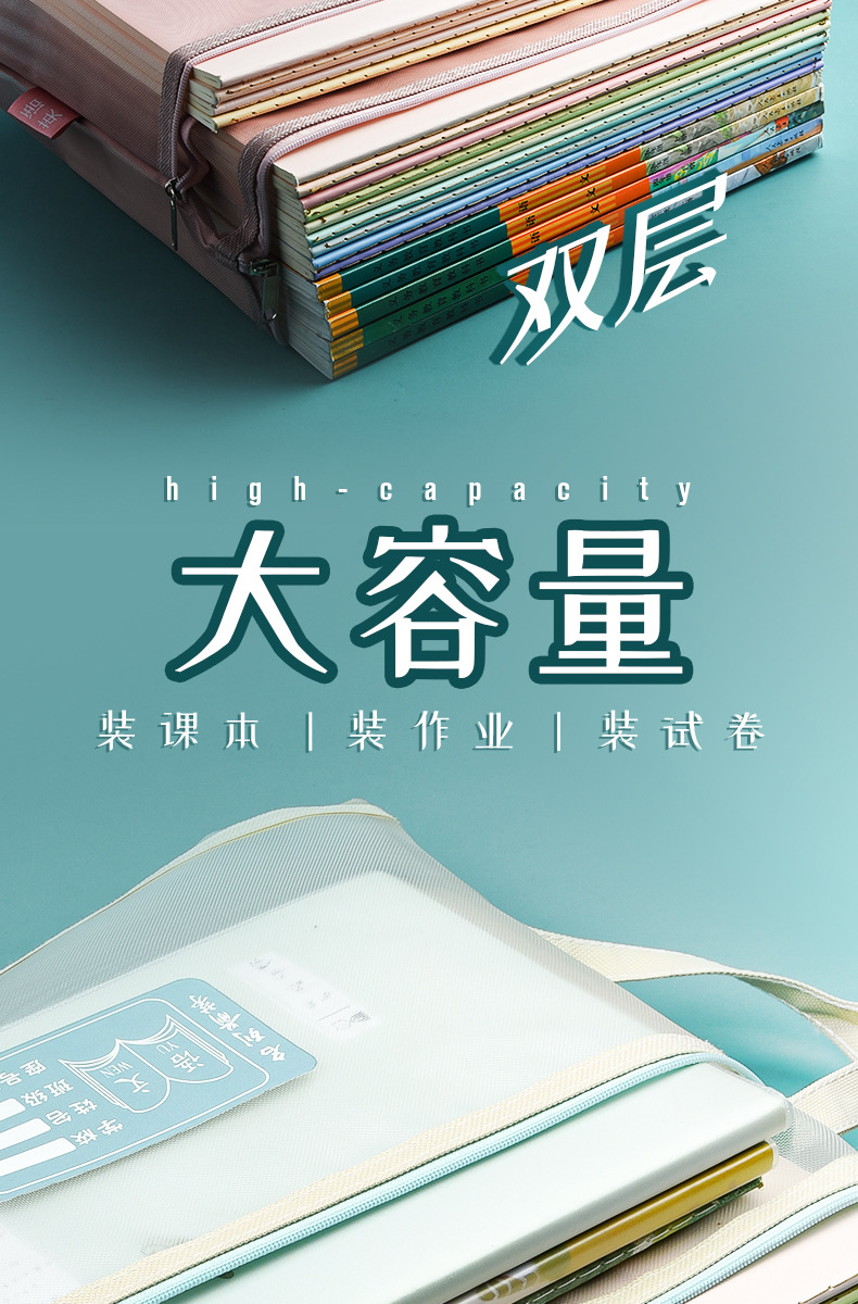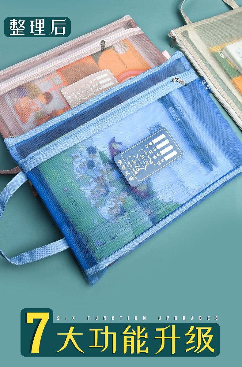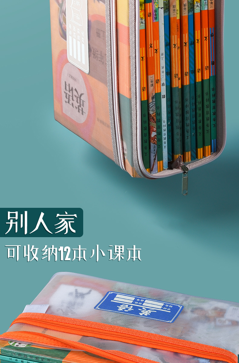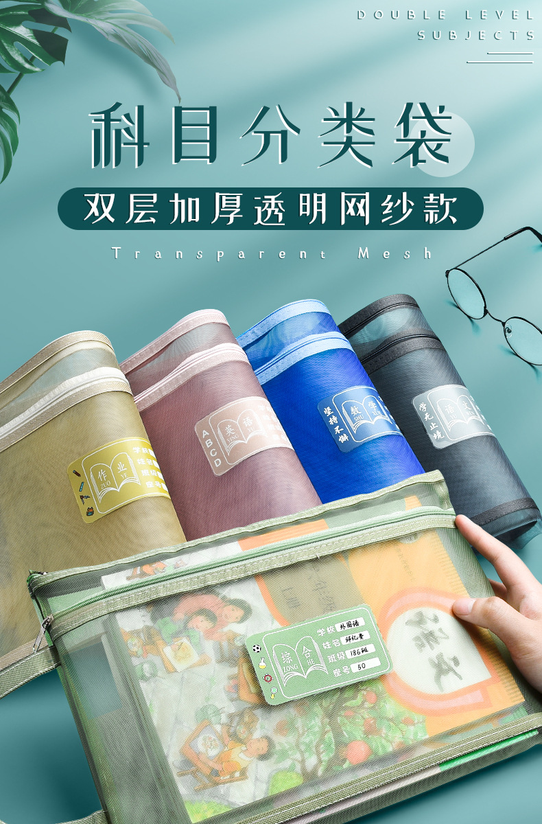 더블 레이어 지퍼 유형 주제 분류 파일 가방 초등학교 학생 도서 교과서 하위 주제 책 가방 테스트 종이 대용량 저장 가방