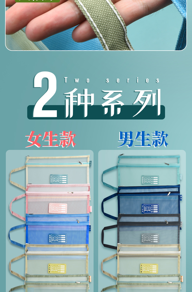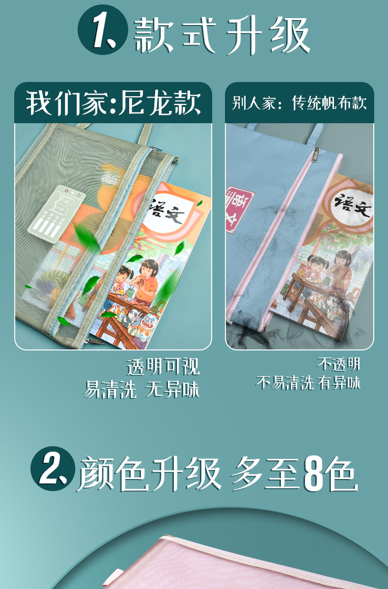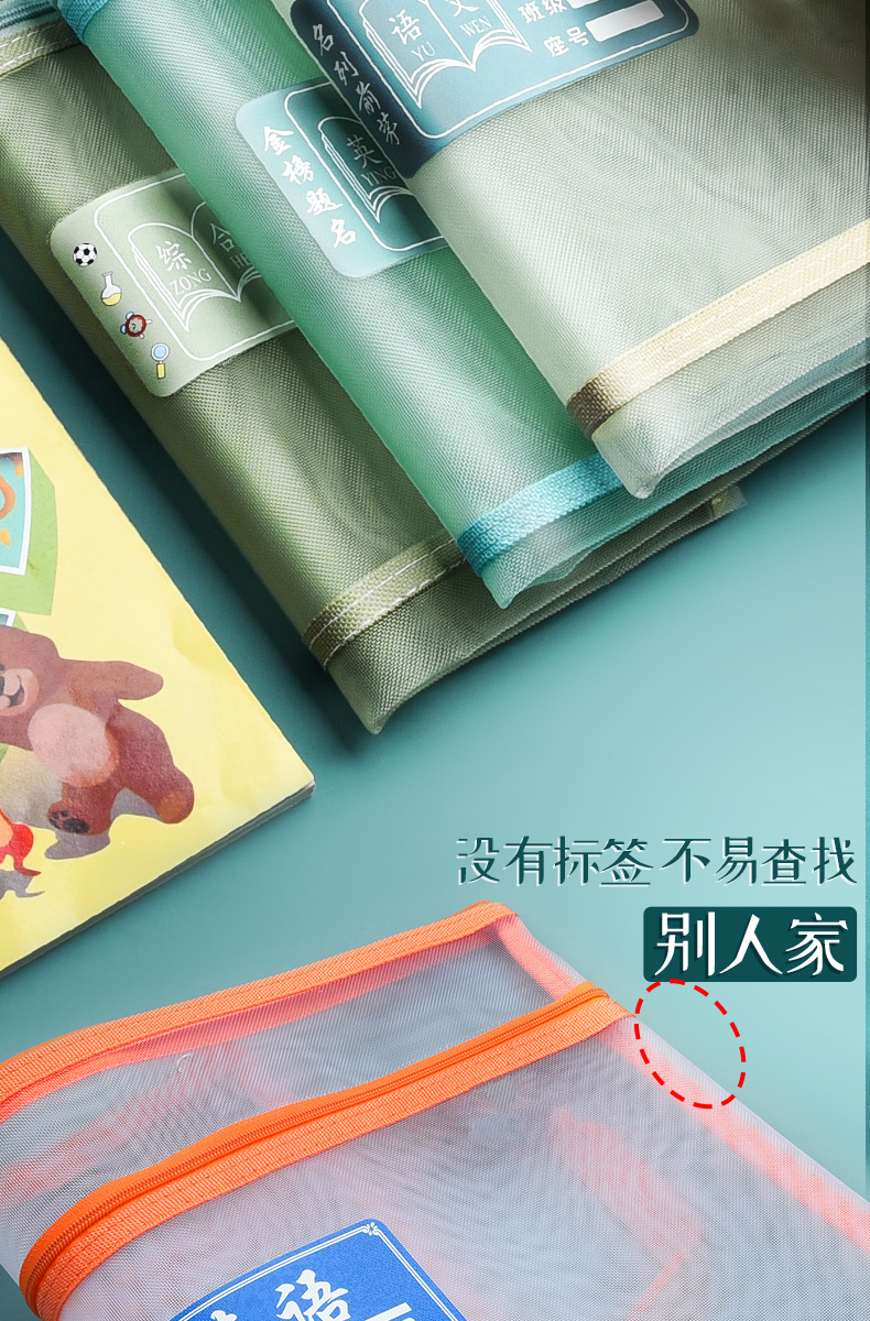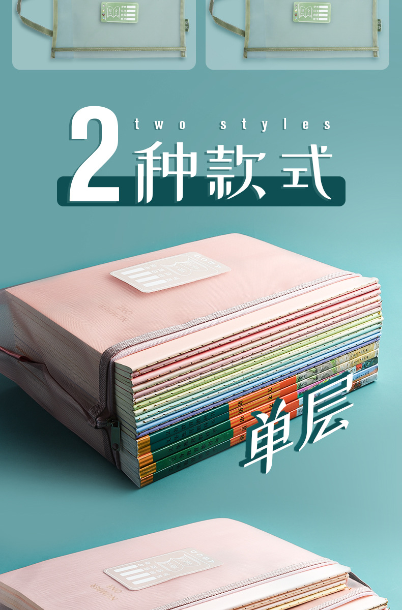 더블 레이어 지퍼 유형 주제 분류 파일 가방 초등학교 학생 도서 교과서 하위 주제 책 가방 테스트 종이 대용량 저장 가방