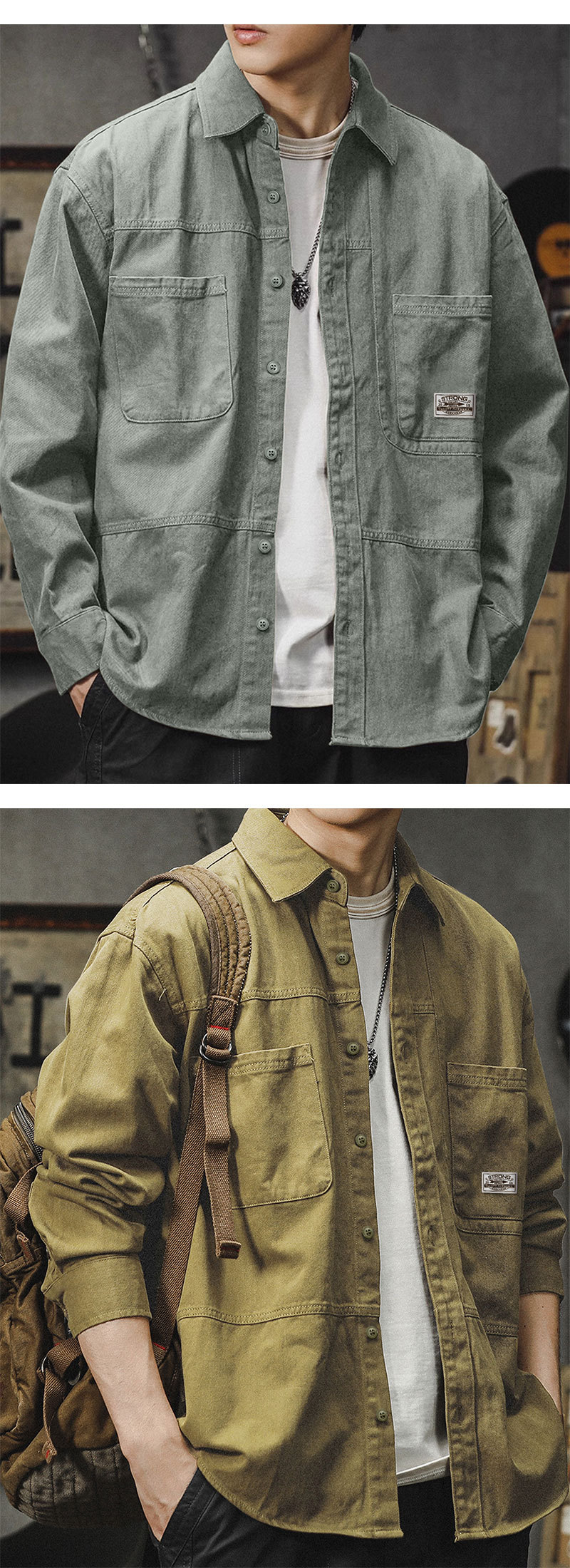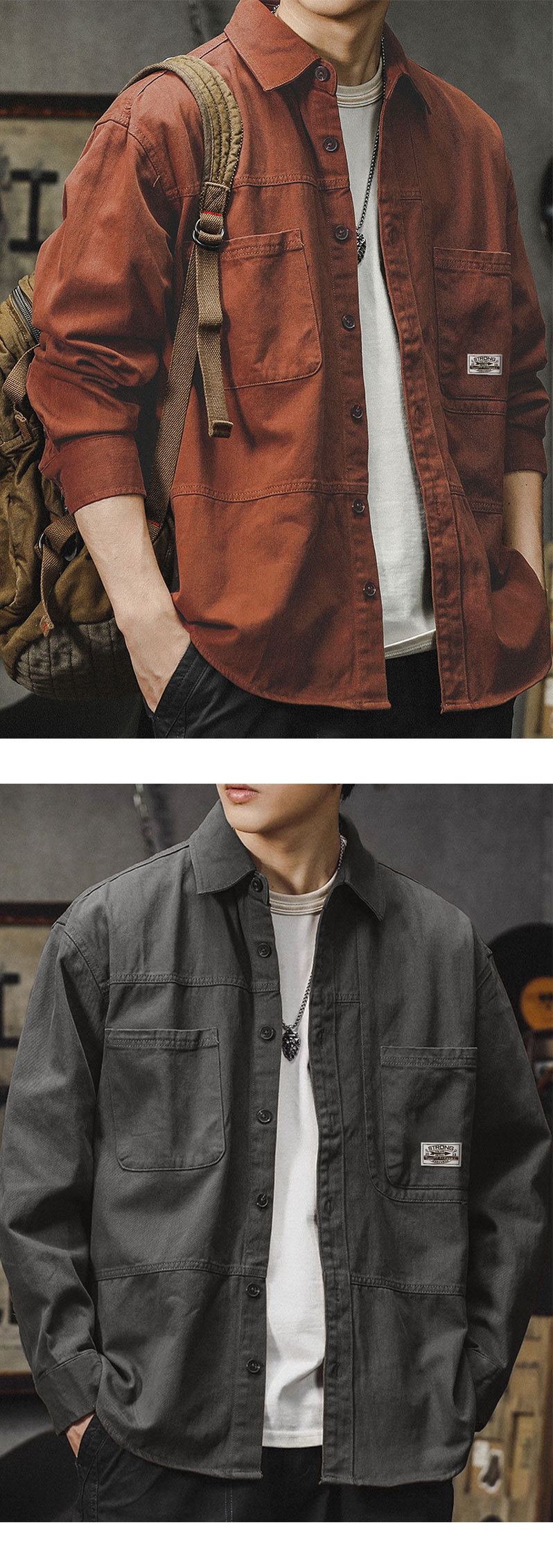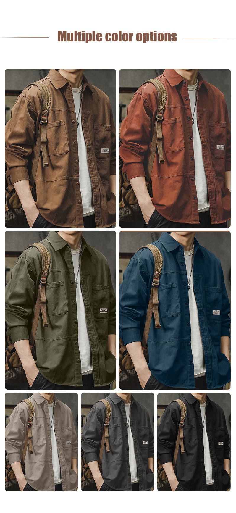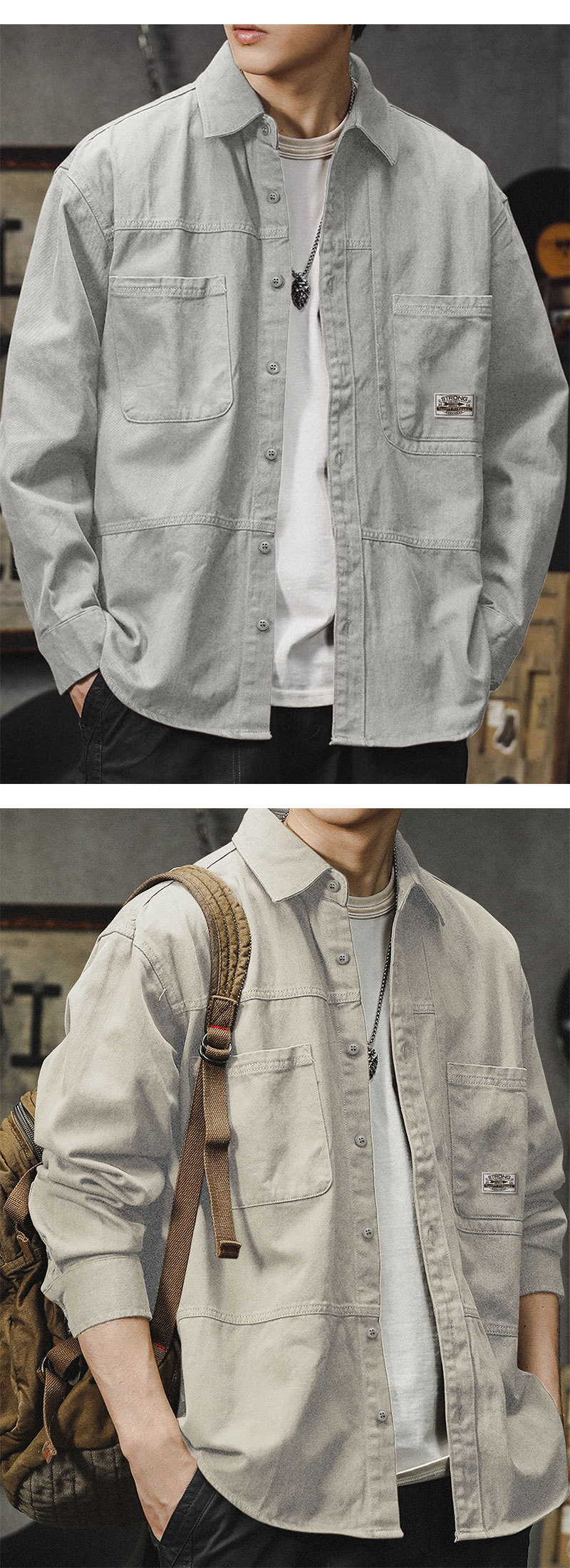 남성용 툴링 셔츠 봄과 가을 코튼 긴 소매 탑 소프트 워시 패브릭 빈티지 툴링 스타일 셔츠