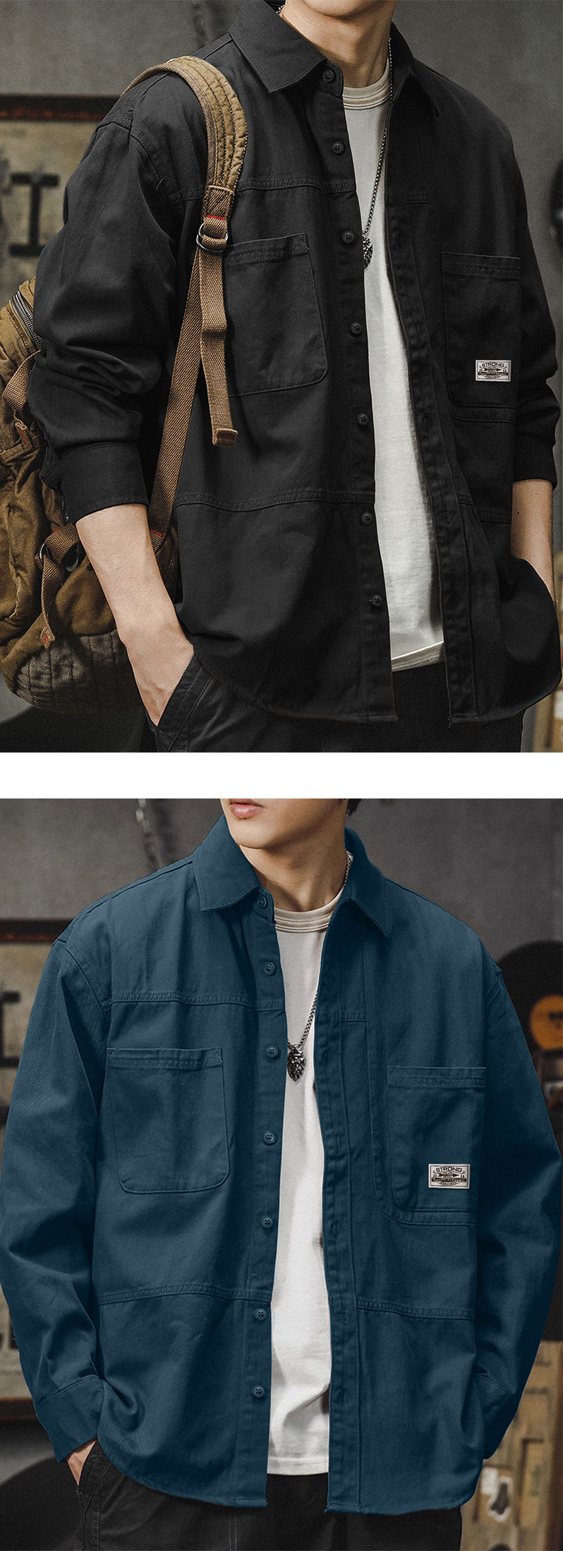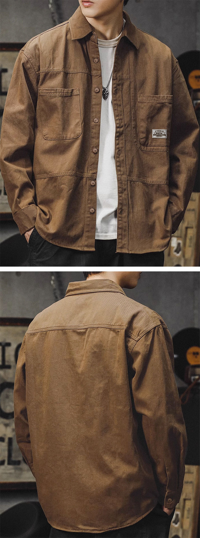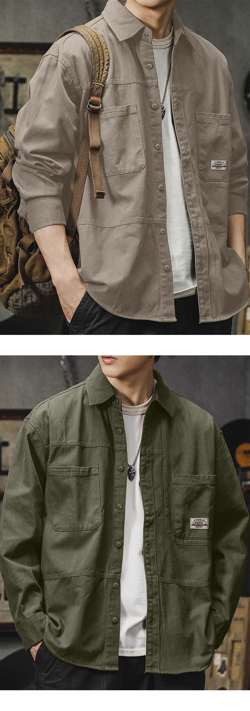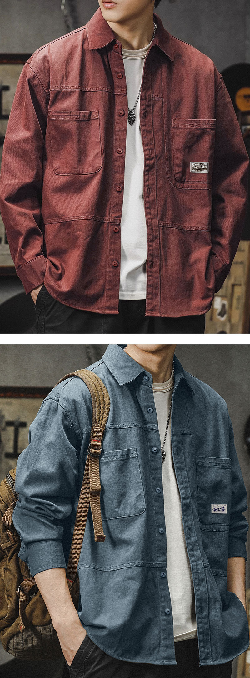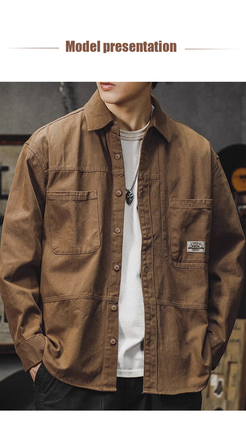 남성용 툴링 셔츠 봄과 가을 코튼 긴 소매 탑 소프트 워시 패브릭 빈티지 툴링 스타일 셔츠