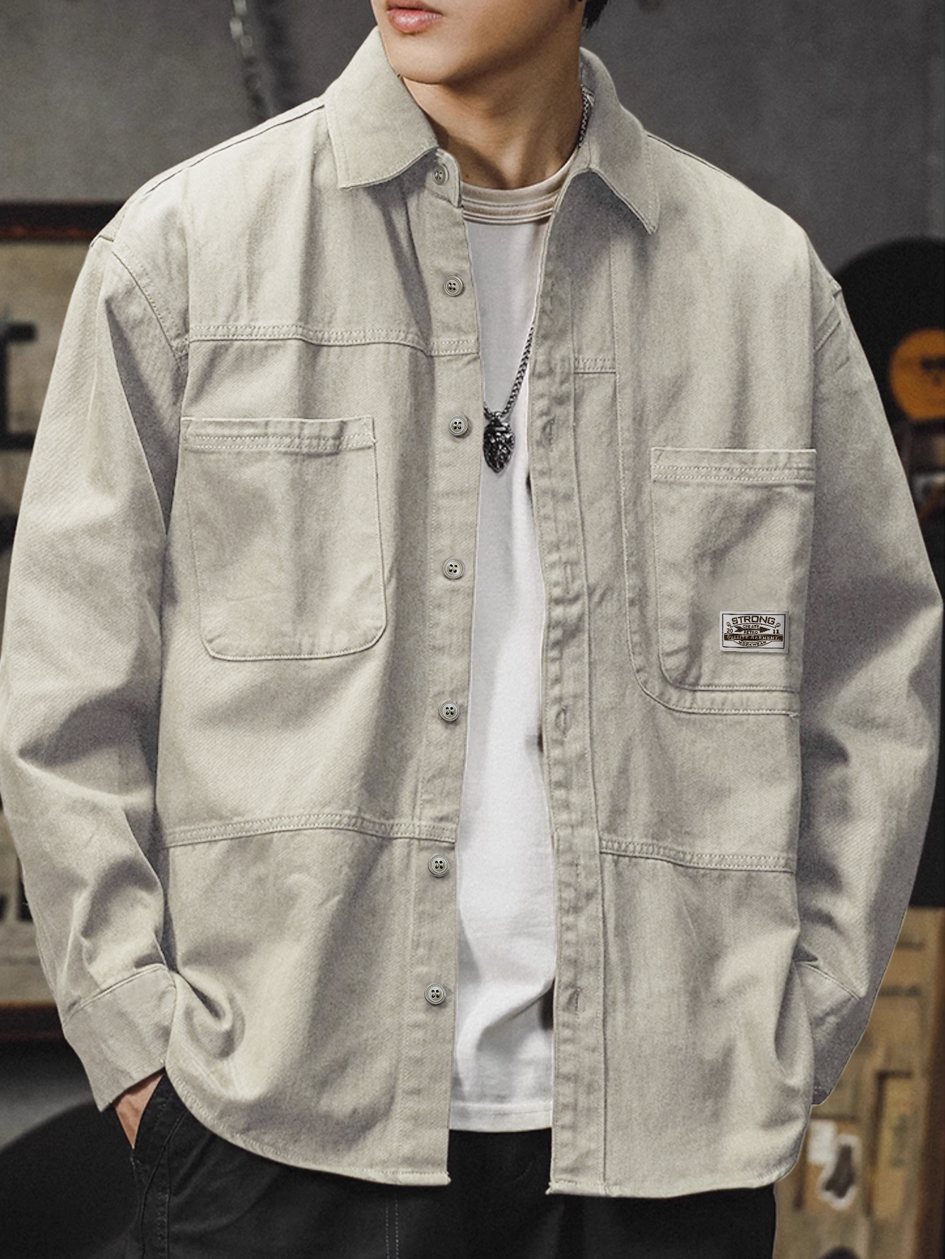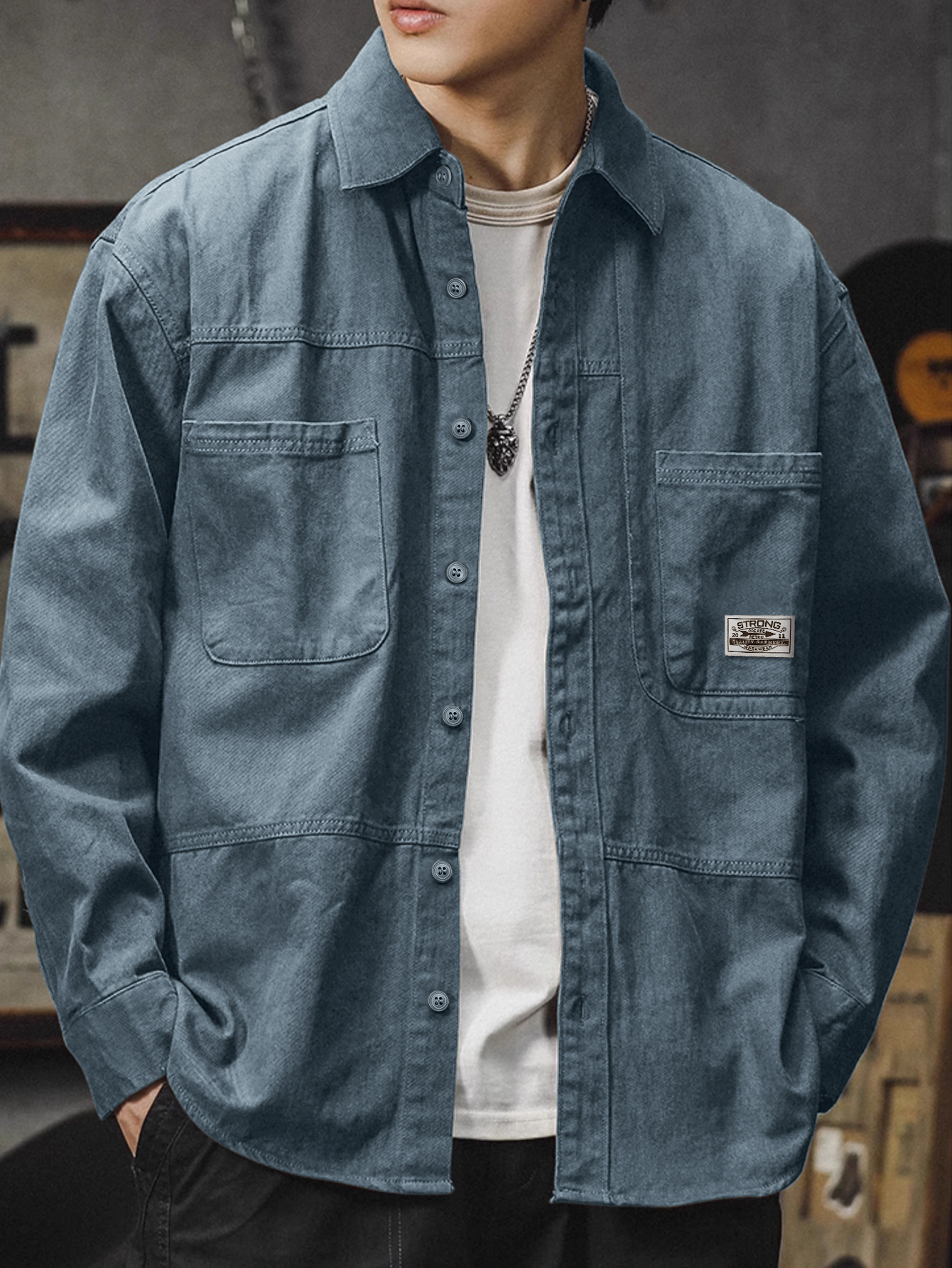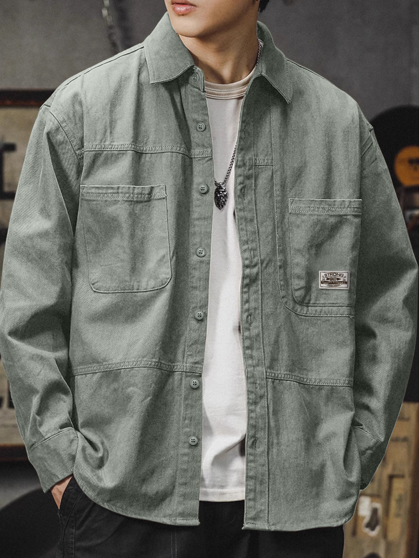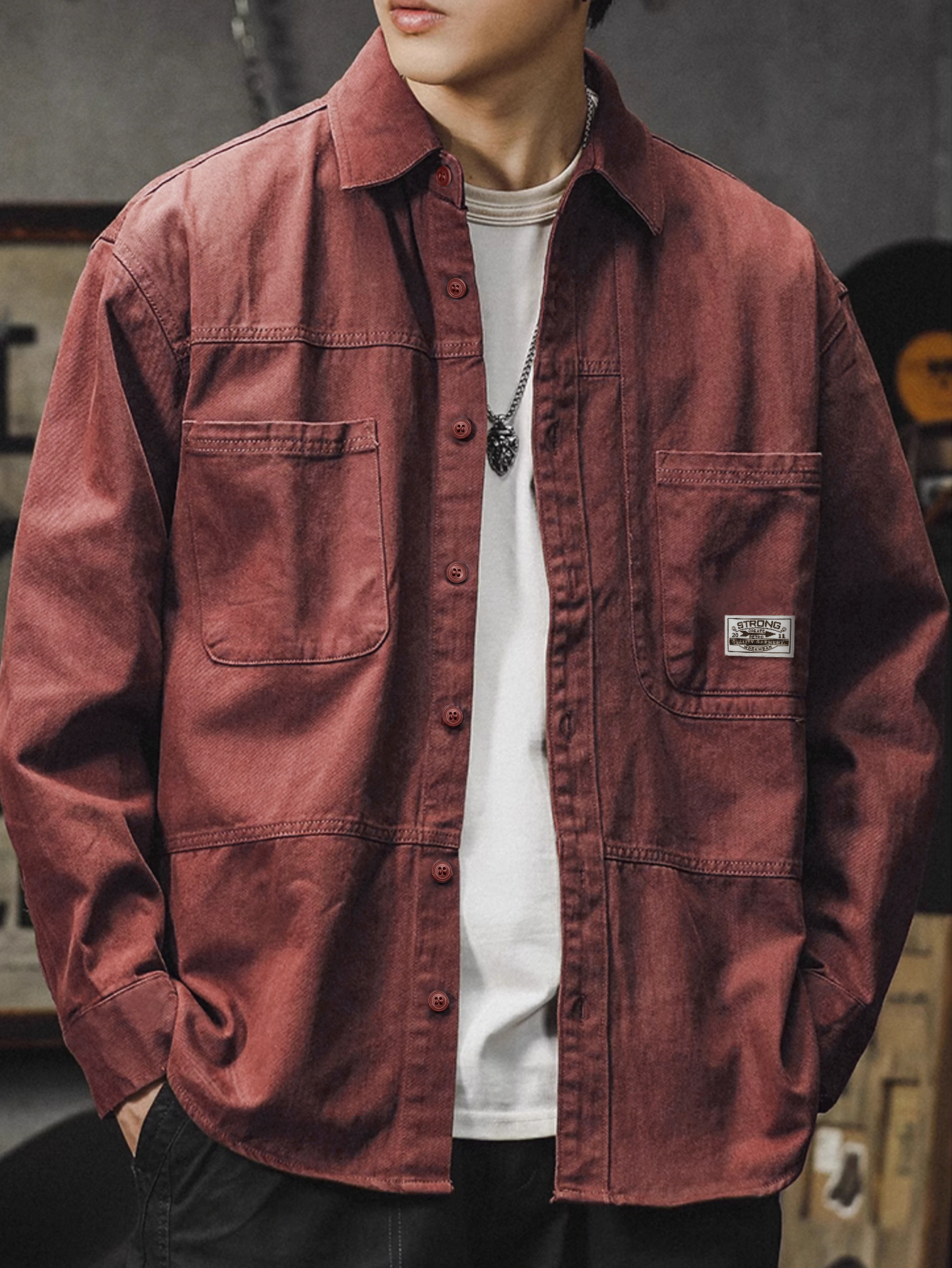 남성용 툴링 셔츠 봄과 가을 코튼 긴 소매 탑 소프트 워시 패브릭 빈티지 툴링 스타일 셔츠