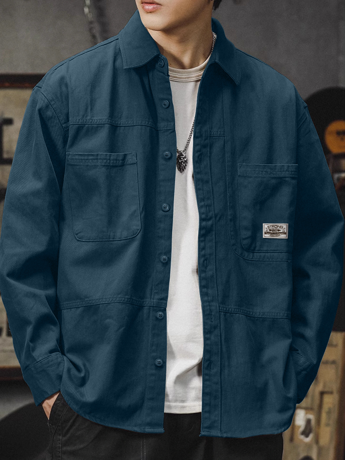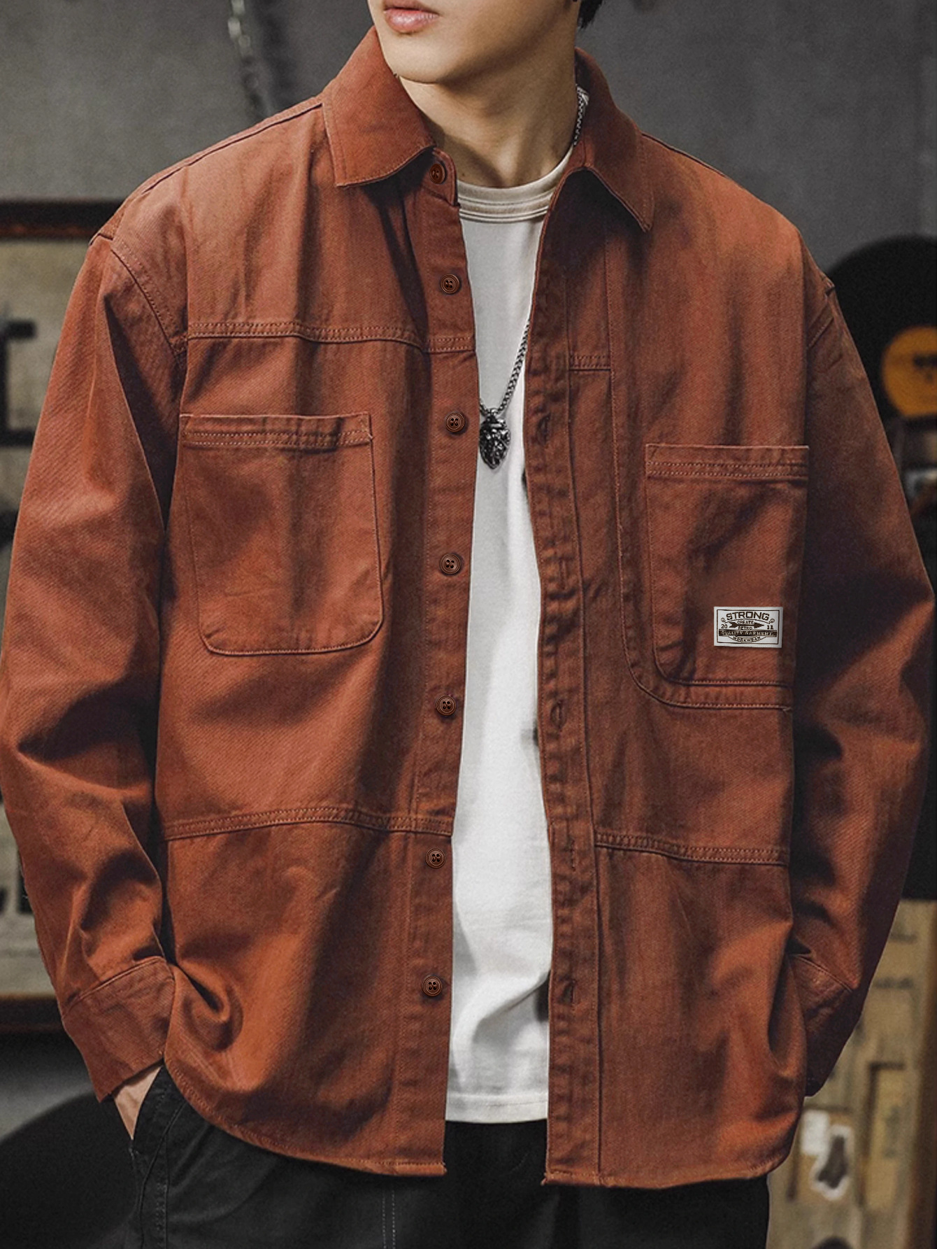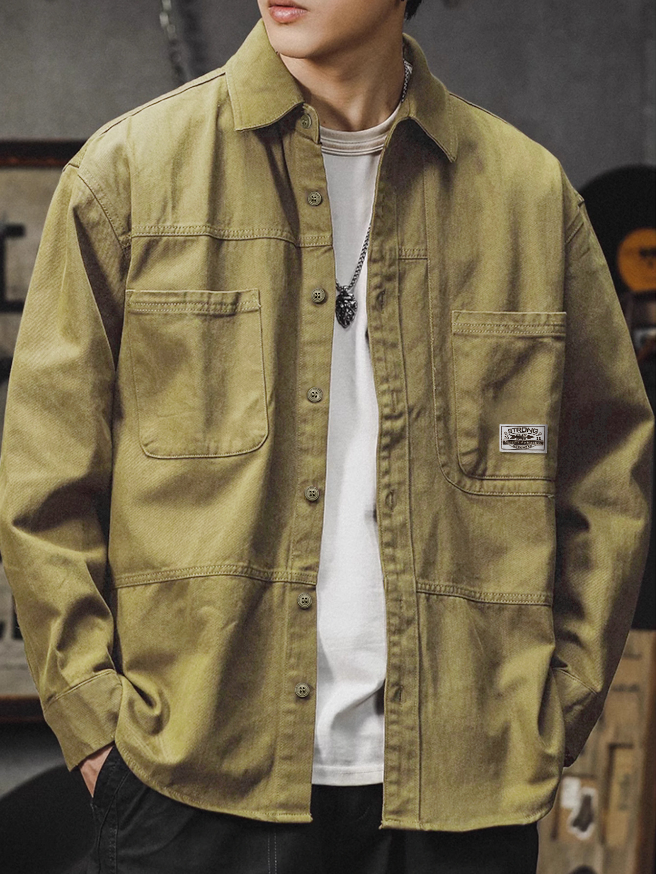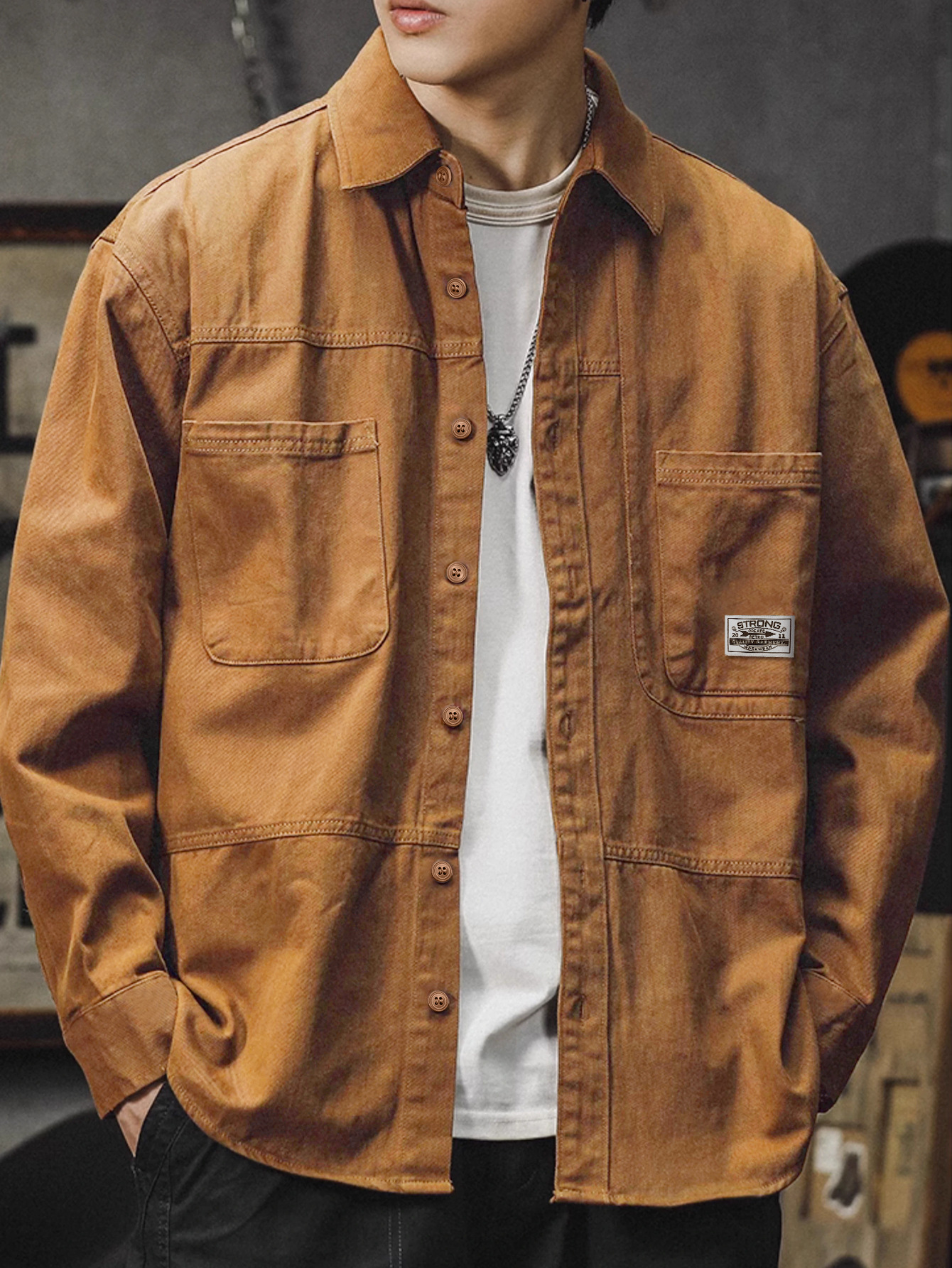 남성용 툴링 셔츠 봄과 가을 코튼 긴 소매 탑 소프트 워시 패브릭 빈티지 툴링 스타일 셔츠