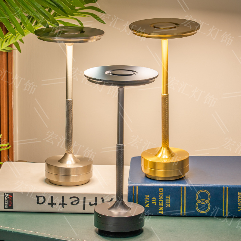 크로스보더 라이트 럭셔리 LED 비행접시 테이블 램프 침실 거실 분위기 조명 야외 캠핑 야간등 알루미늄 터치식 소형 야간등