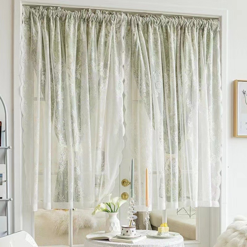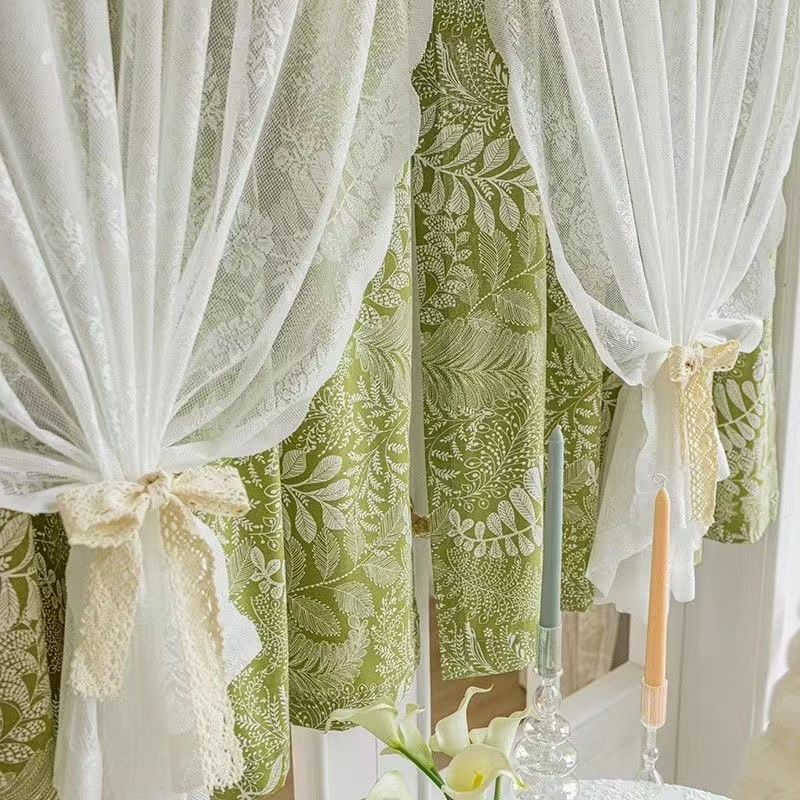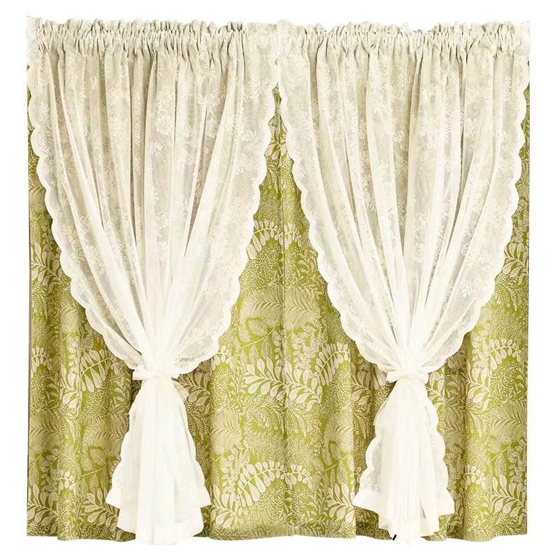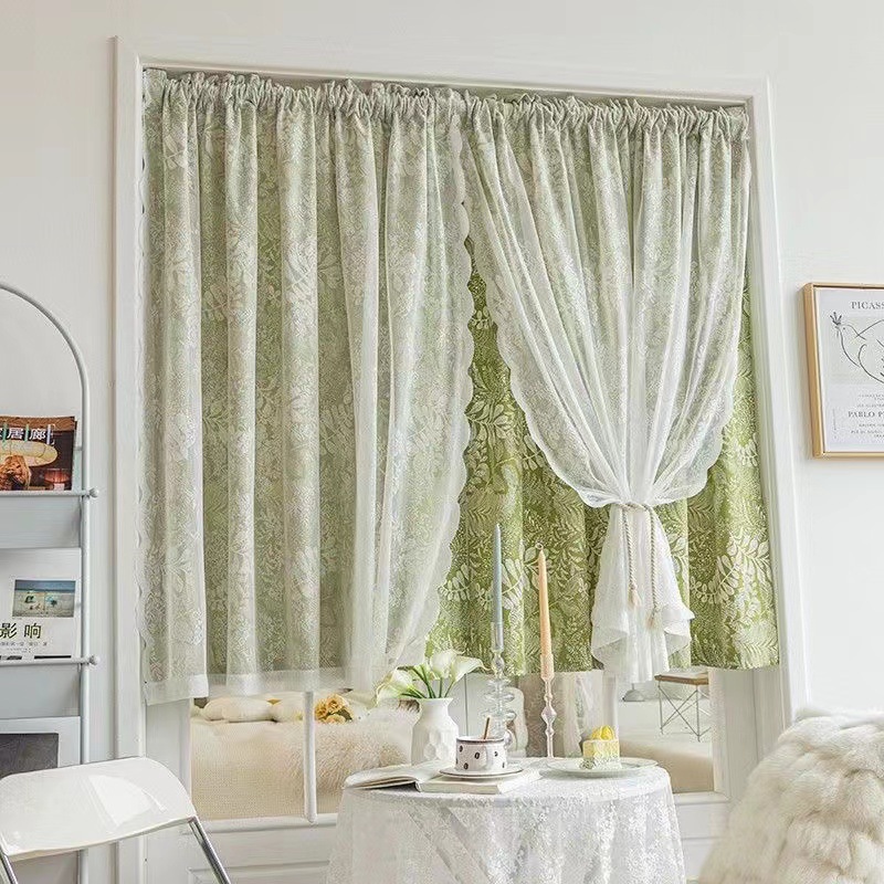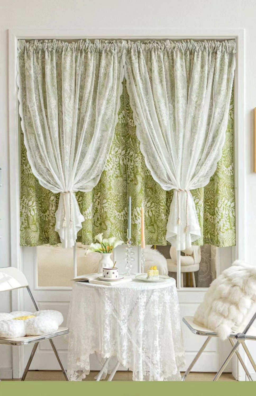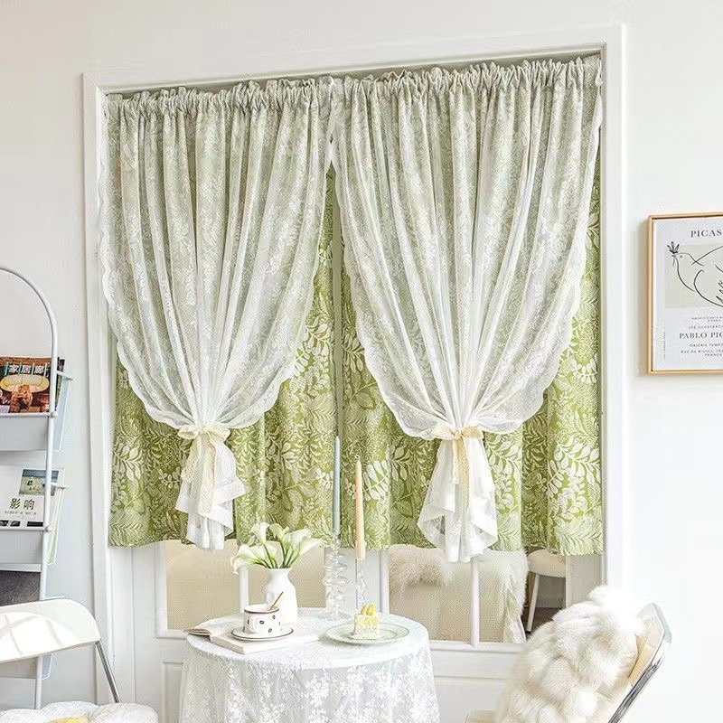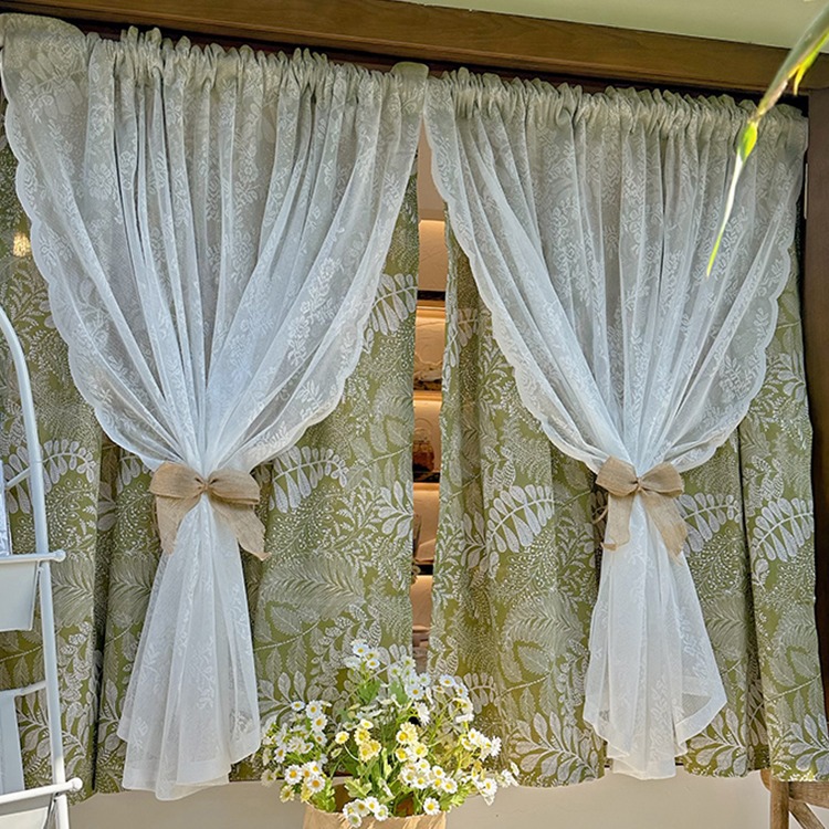 부직포 더블 레이어 커튼 프렌치 레이스 하프 커튼 도어 커튼 주방 작은 신선한 녹색 침실 목가적 인 스타일