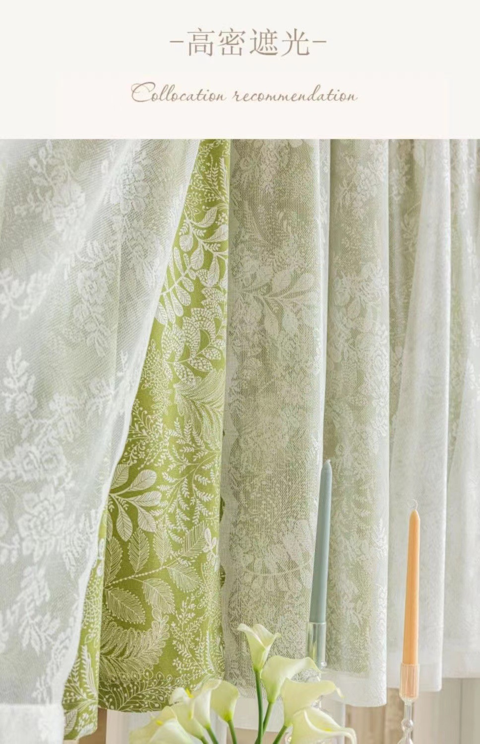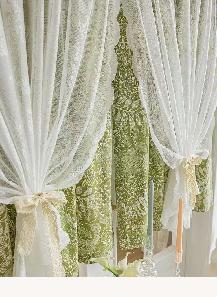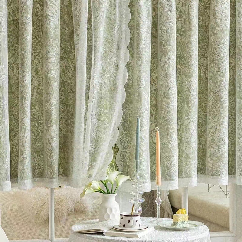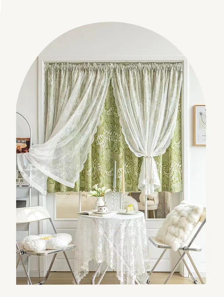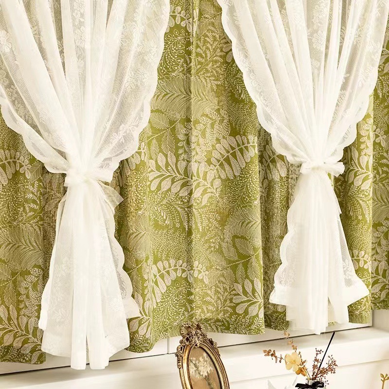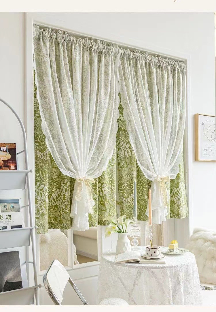 부직포 더블 레이어 커튼 프렌치 레이스 하프 커튼 도어 커튼 주방 작은 신선한 녹색 침실 목가적 인 스타일