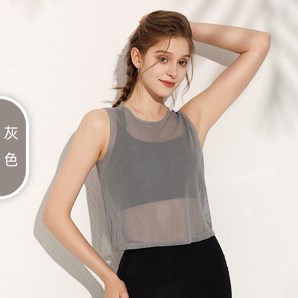 새로운 여름 얇은 메쉬 요가 옷 탑 블라우스 여성용 민소매 조끼 빠른 건조 통기성 피트니스 탑 스택
