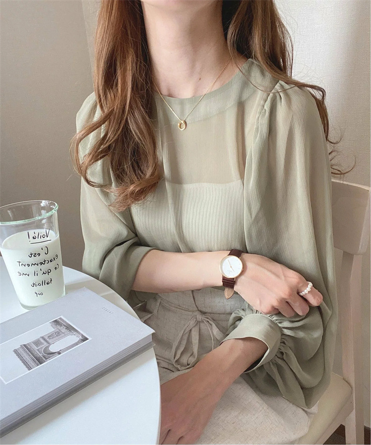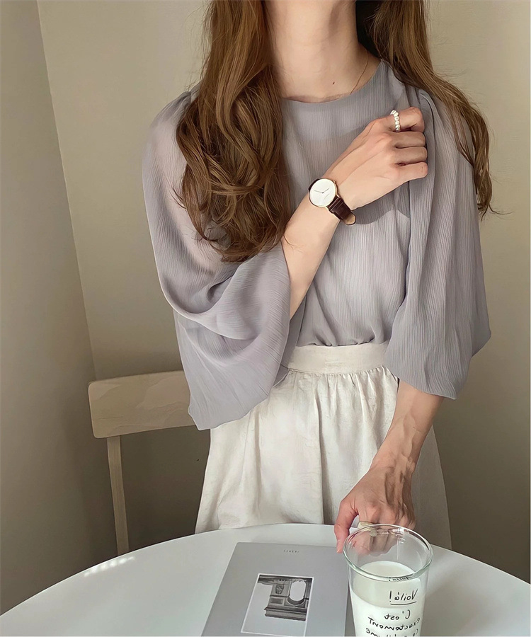 재고 외국인 단일 일본 한국 무역 롯데 크루 넥 에어컨 셔츠 쉬폰 비치 셔츠 탑 베이스 셔츠