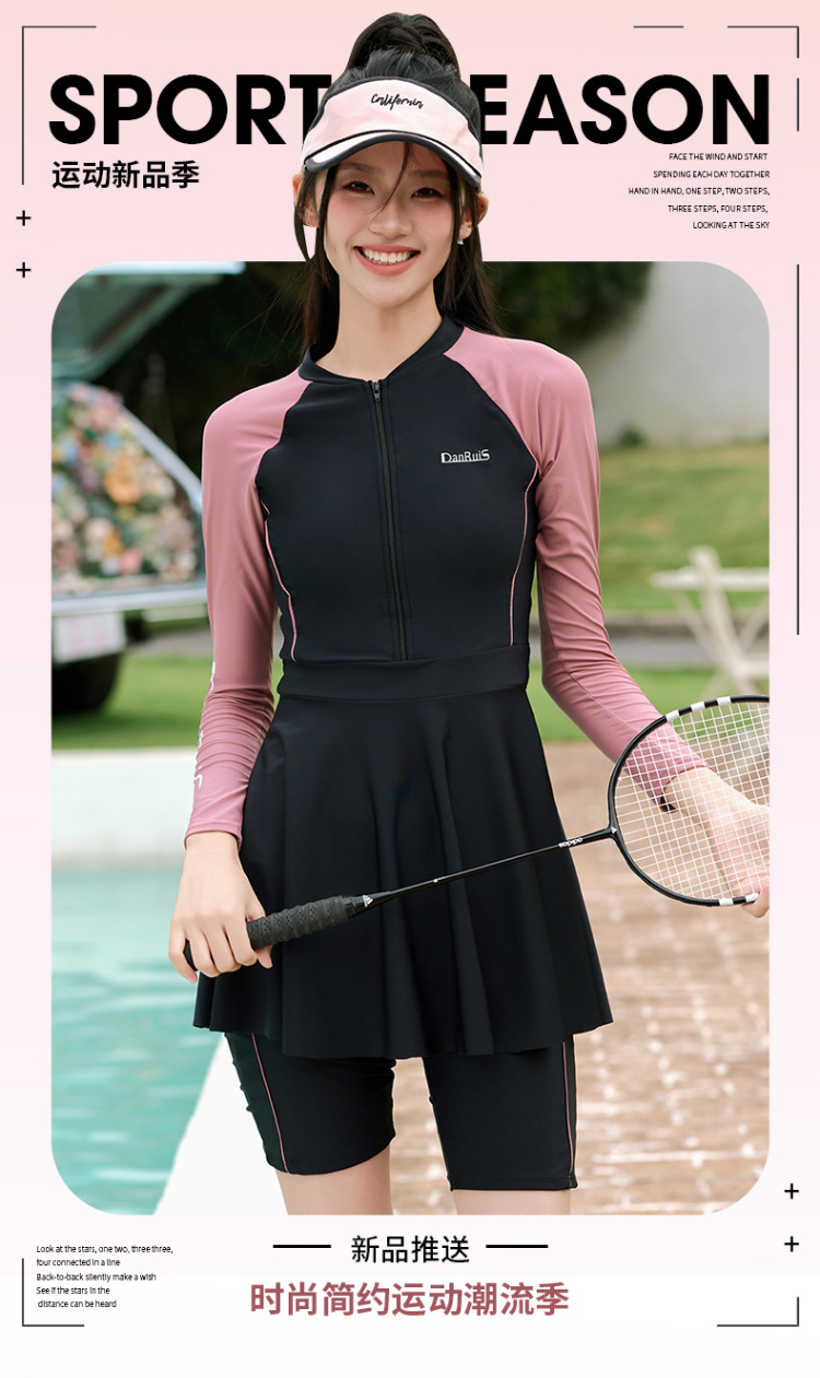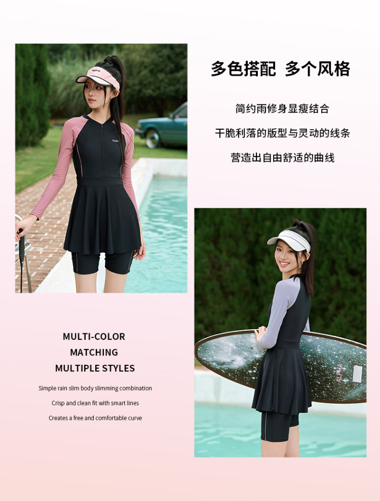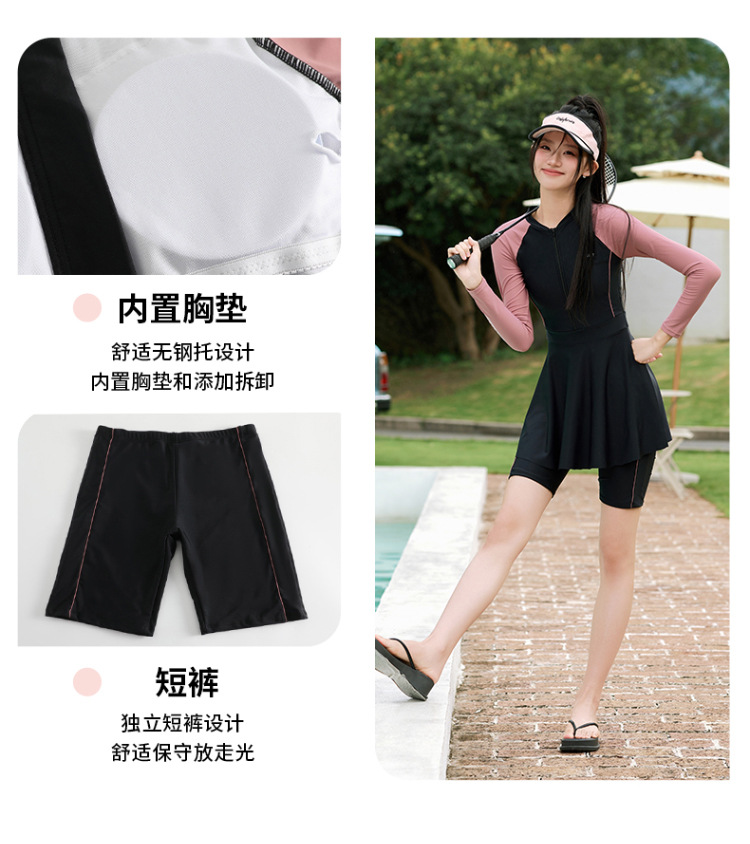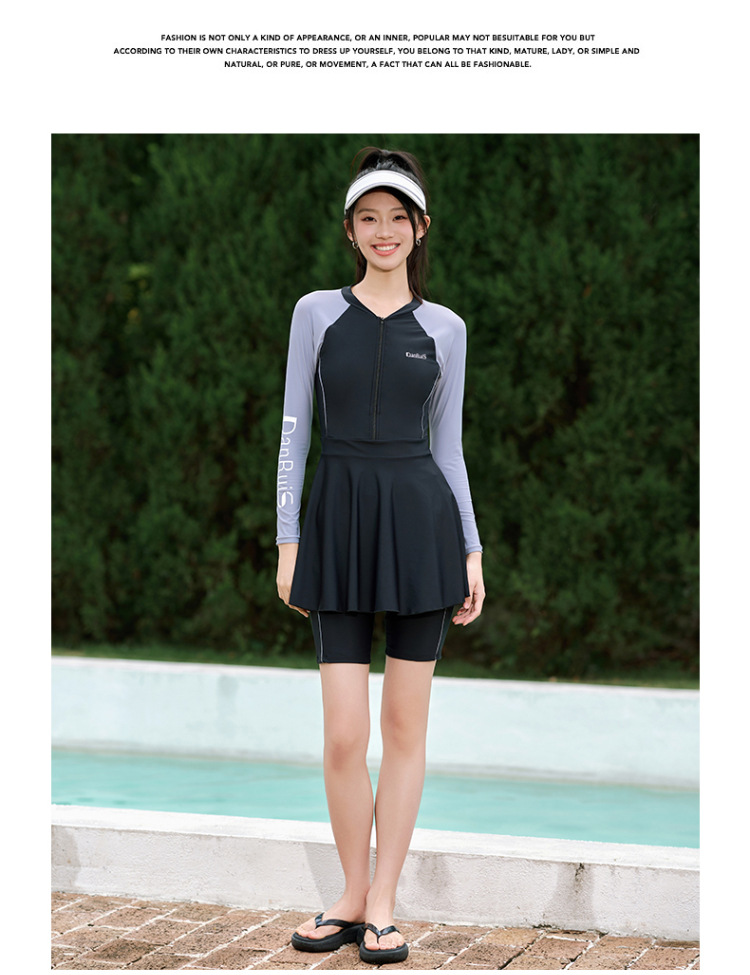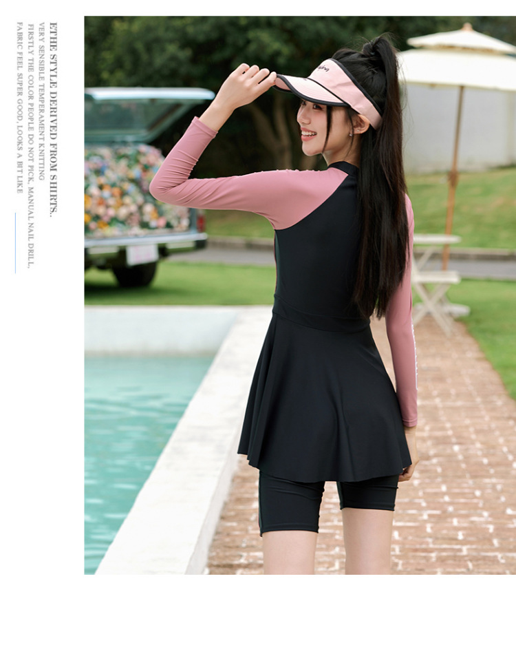 플러스 사이즈 스포츠 수영복 여성의 보수적 인 느슨한 태양 보호 통통녀 훈련 학생 긴 소매 5 점 바지 온천 스커트스토어 가기