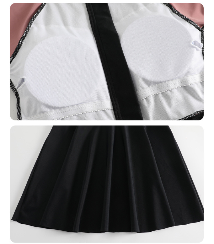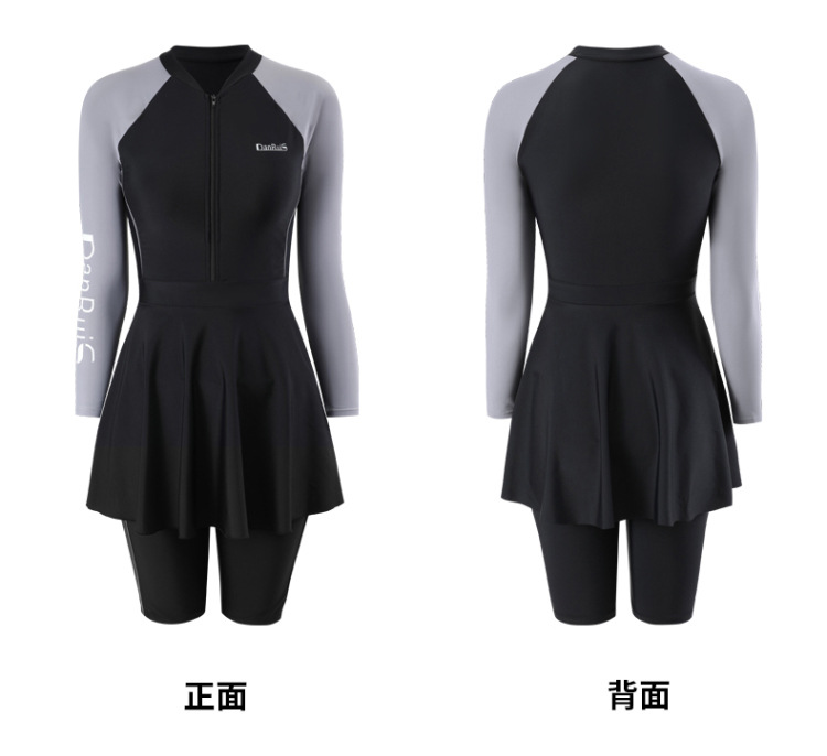 플러스 사이즈 스포츠 수영복 여성의 보수적 인 느슨한 태양 보호 통통녀 훈련 학생 긴 소매 5 점 바지 온천 스커트