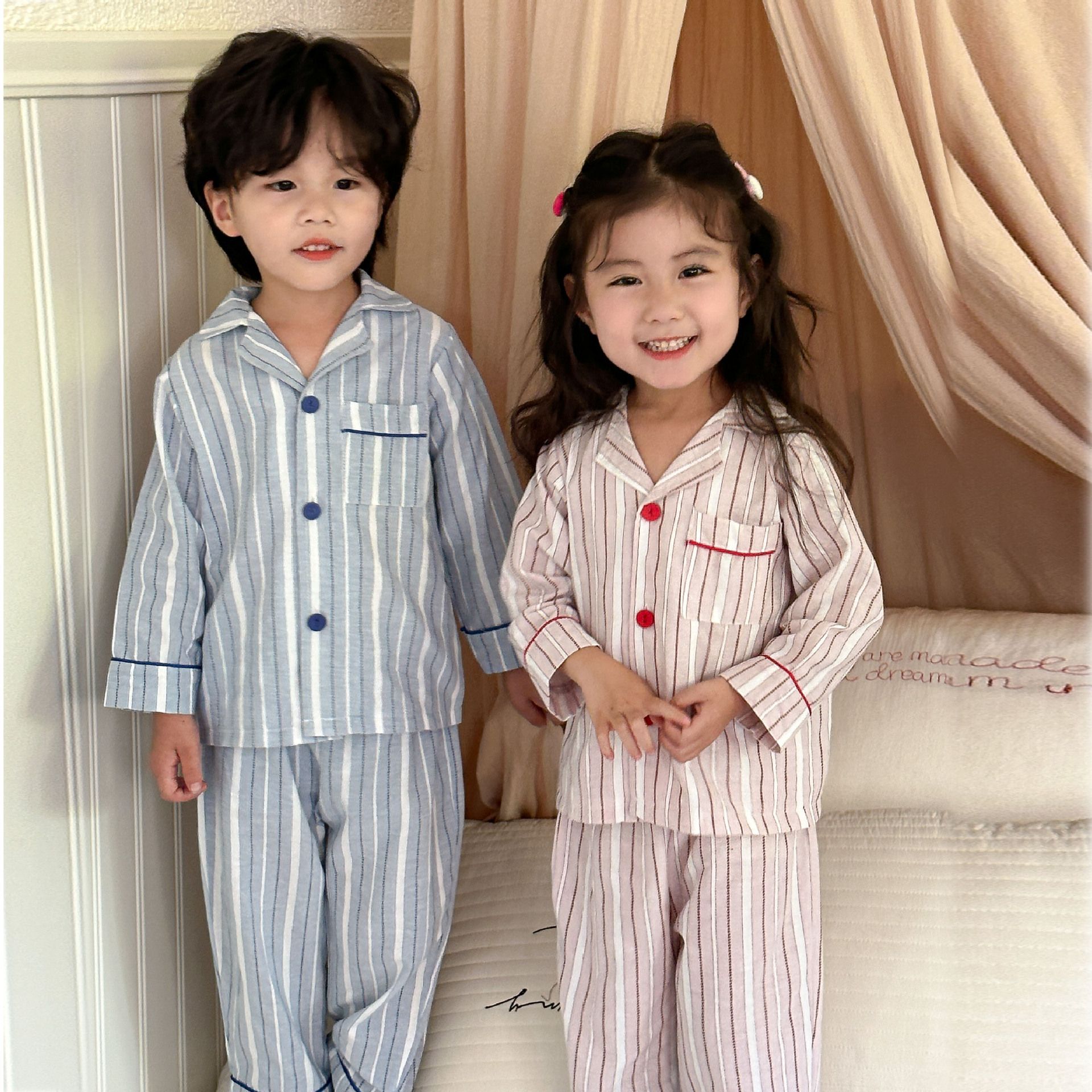 어린이 잠옷 여아 순면 줄무늬 2025 신상 봄 가을 아기 긴팔 세트 여아 남아 홈웨어