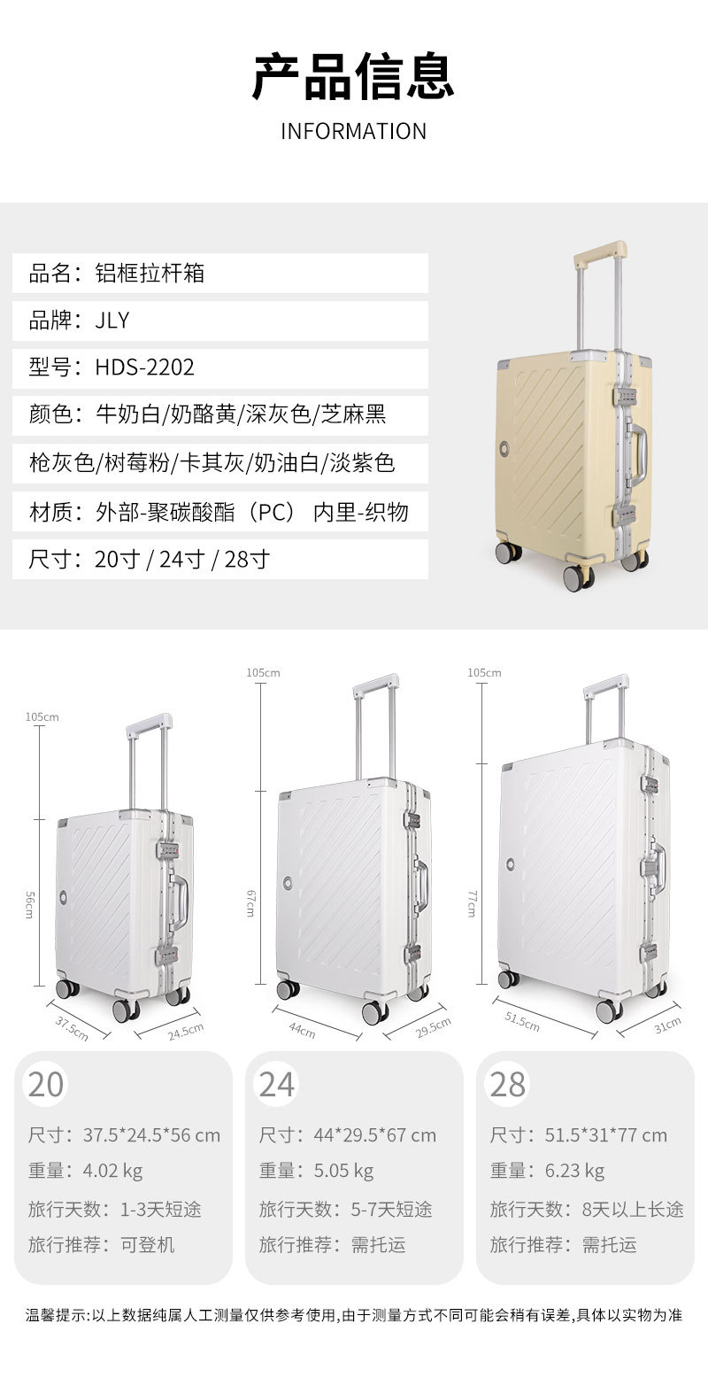 부티크 비즈니스 수하물 탑승 상자 알루미늄 프레임 튼튼하고 내구성이 뛰어난 남성 및 여성 패션 트롤리 케이스 여행 수하물 조합 잠금 장치스토어 가기