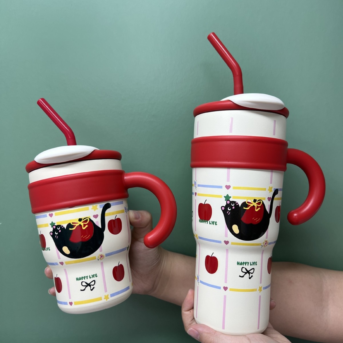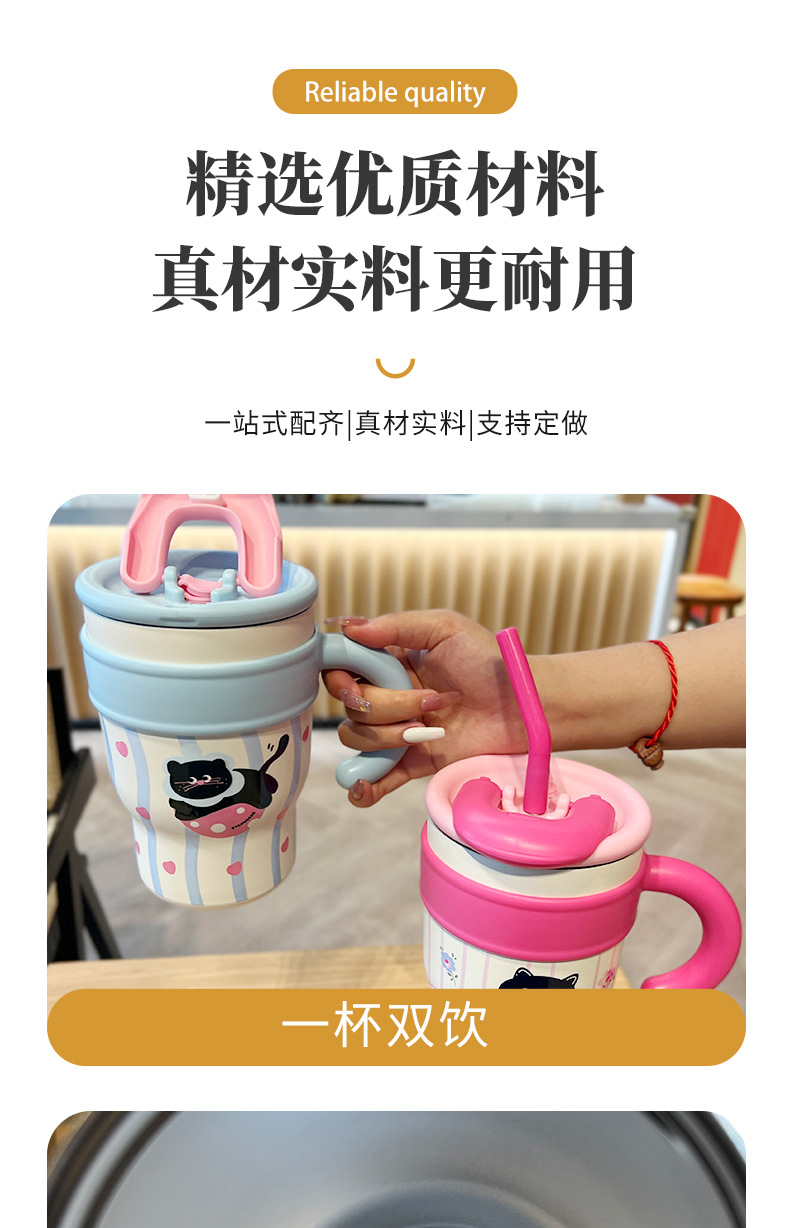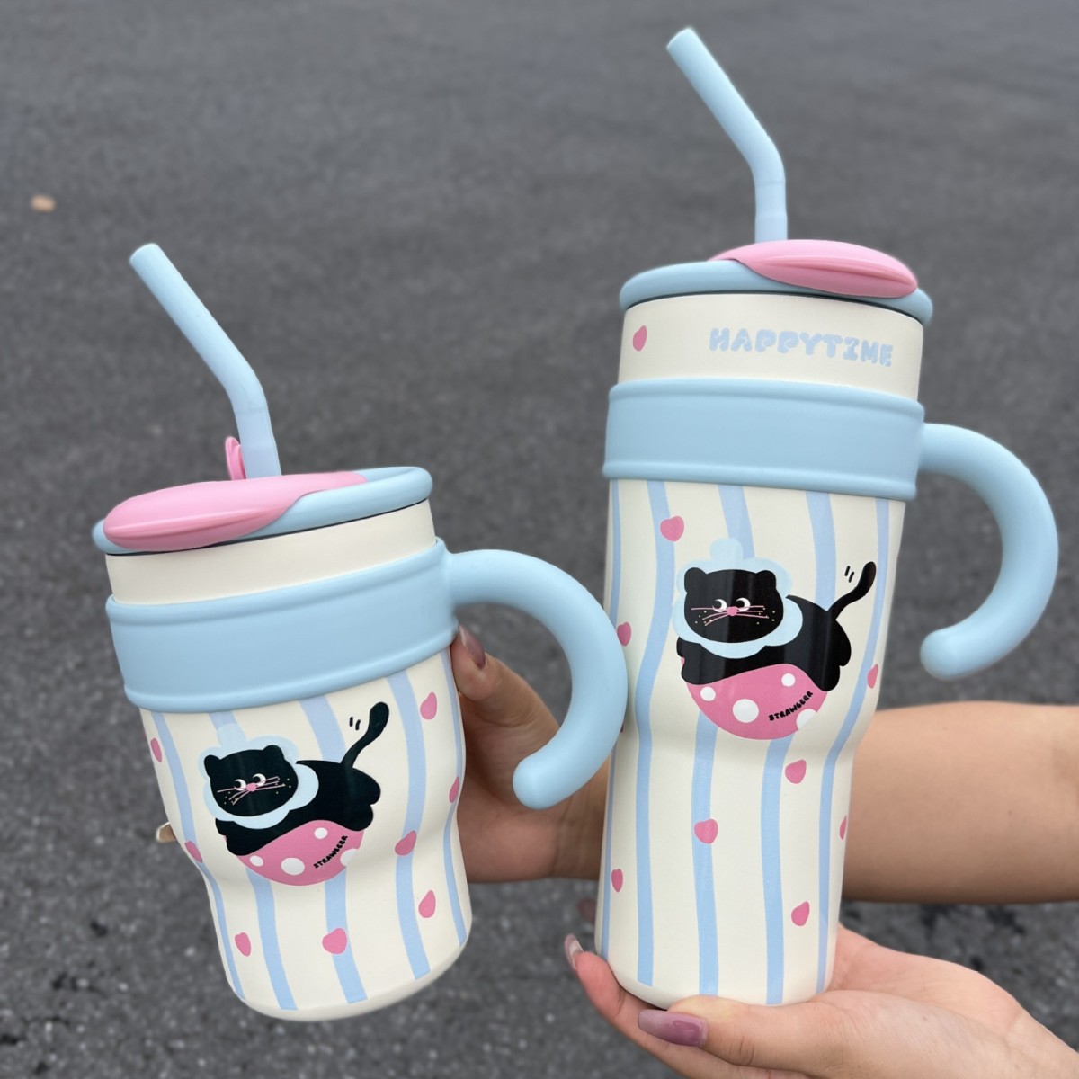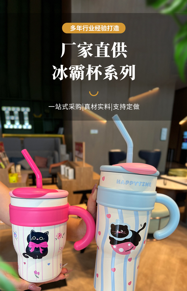 큰 맥 얼음 깡패 컵 대용량 짚 보온병 컵 여자 2024 새로운 사무실 차가운 단열 컵 높은 색상 값스토어 가기