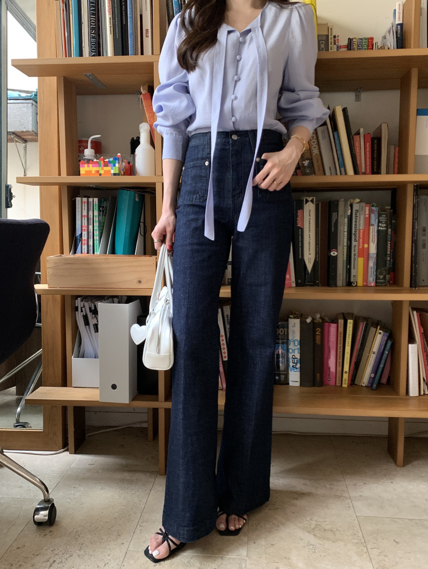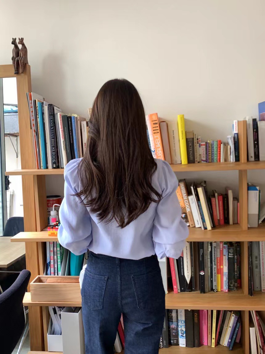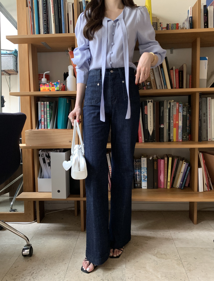한국 봄 새로운 프랑스 V 넥 스트랩 긴 소매 셔츠스토어 가기