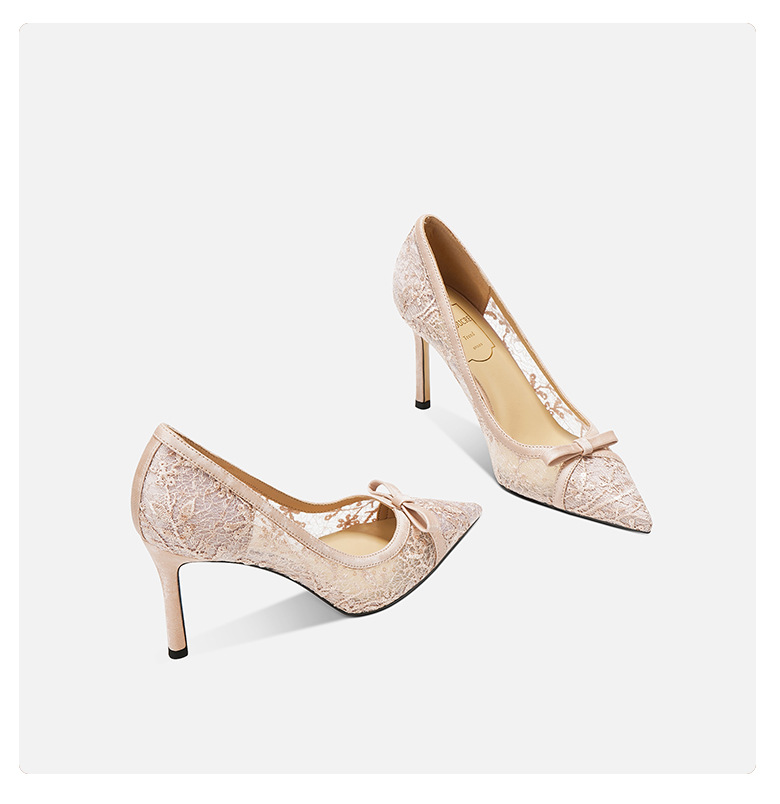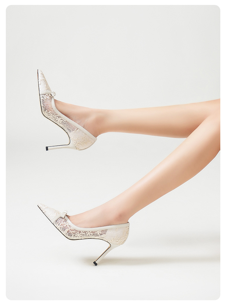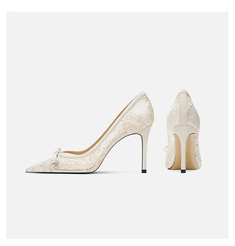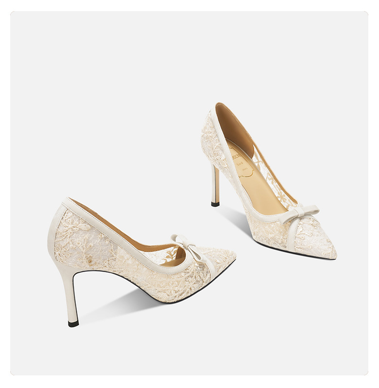 708-41 유럽과 미국의 새로운 메쉬 활 하이힐 기질 연회 신발 웨딩 신부 하이힐 양가죽