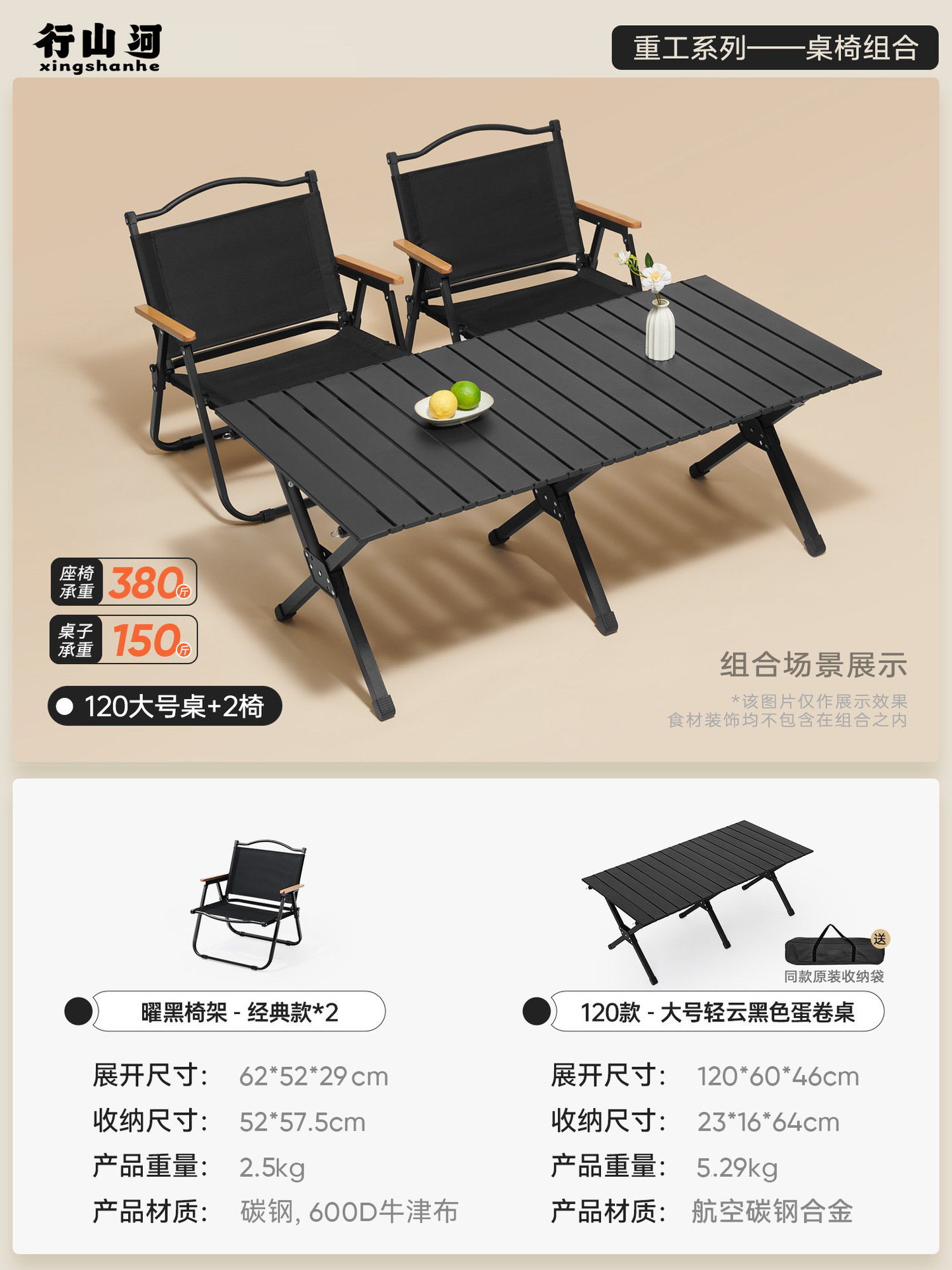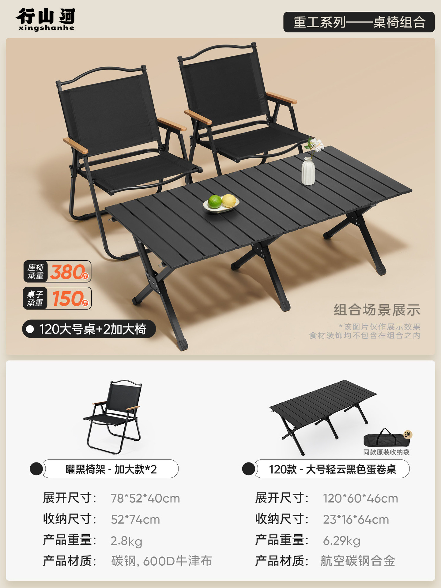 • 120cm 검정색 탄소강 테이블 + 특대형 의자 2개