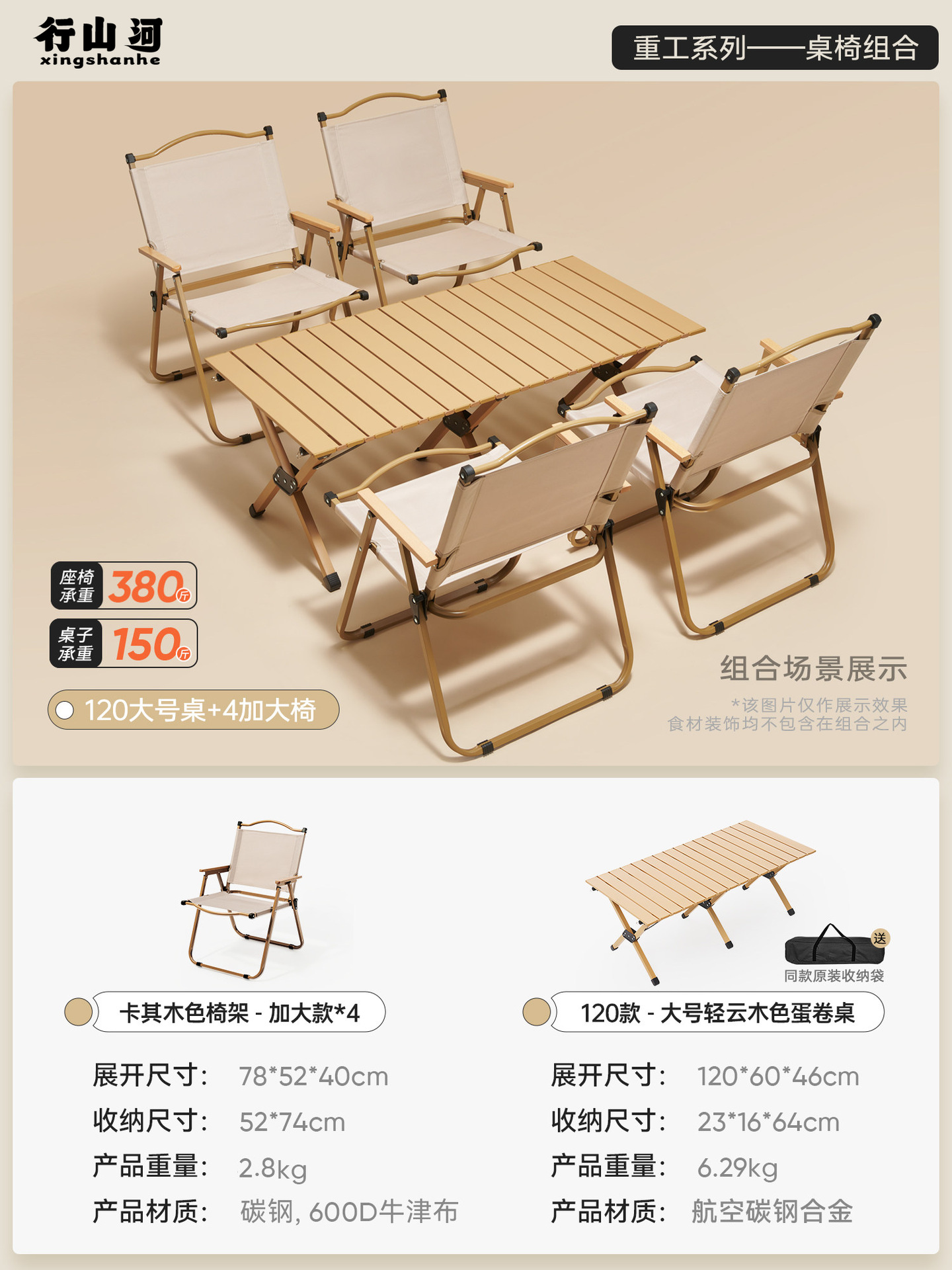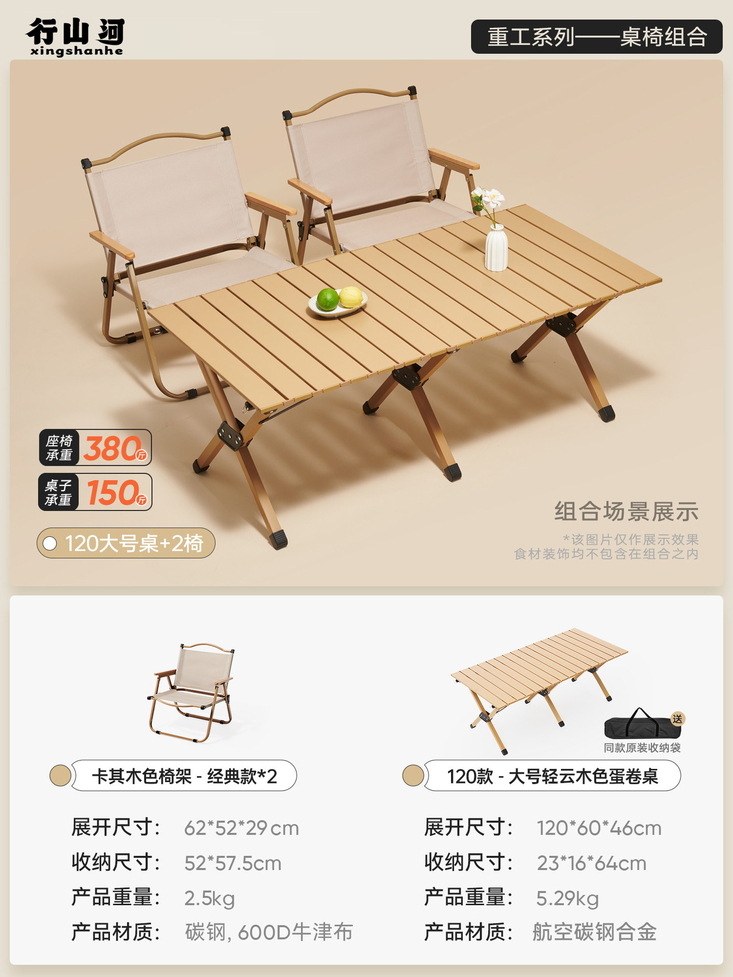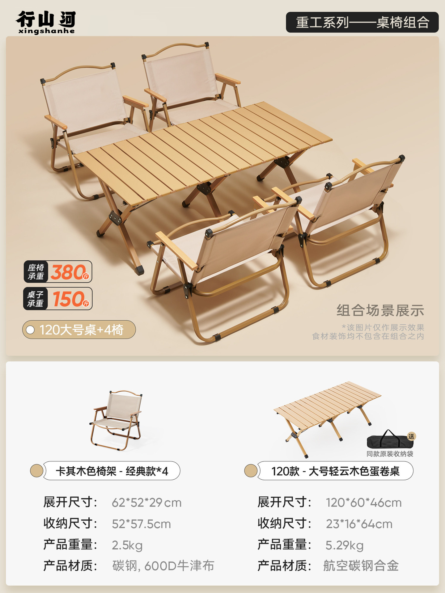 • 탄소강 [캠핑 테이블] 대형 테이블 120cm - 우드 grain 색상