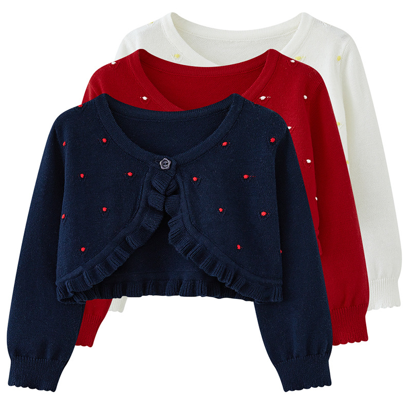 한국 스타일 둥근 목 컬러 볼 여자 아기 니트 카디건 목도리 스웨터 코트 얇은 에어컨 카디건 순면
