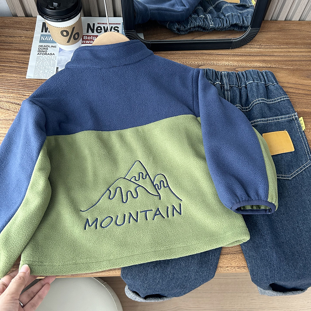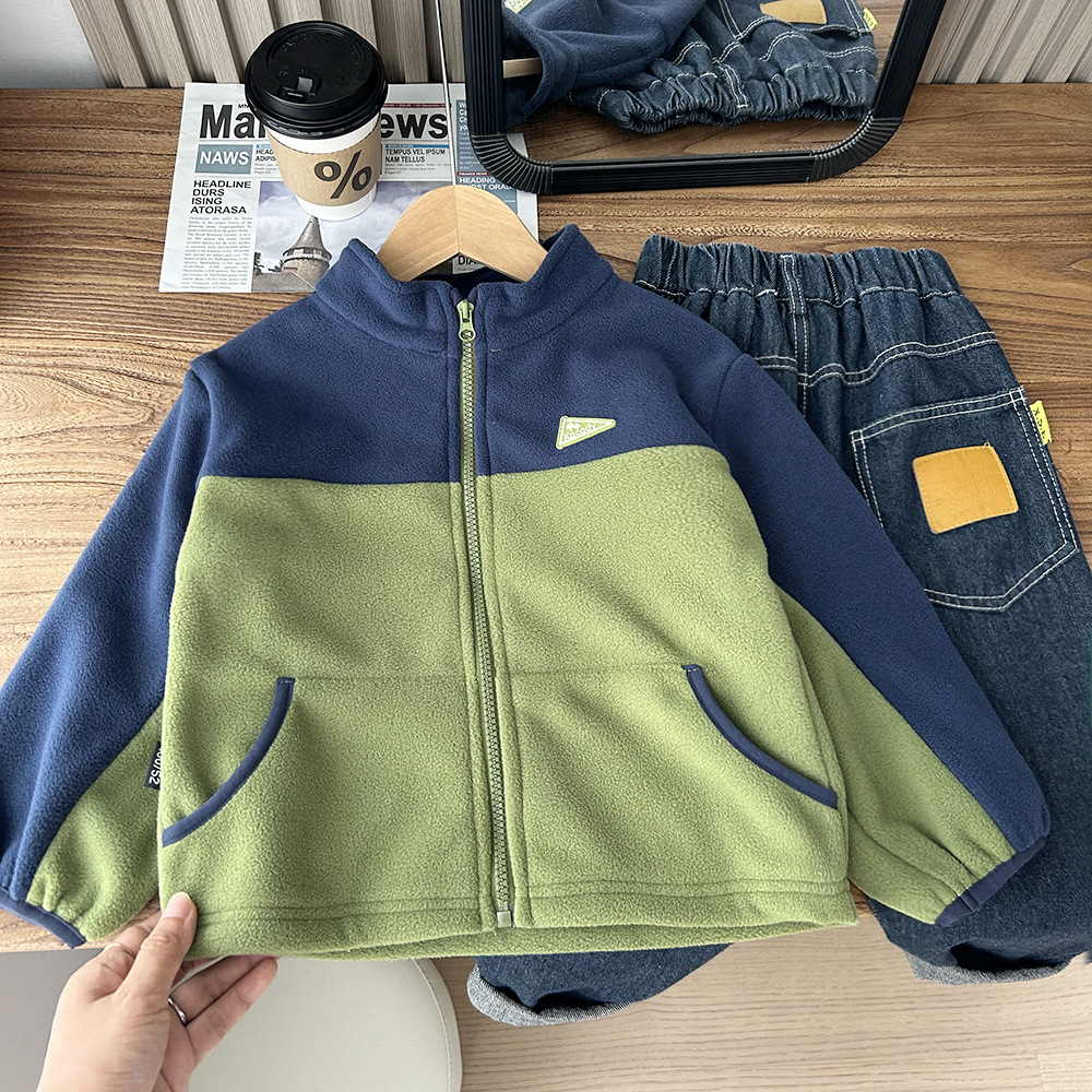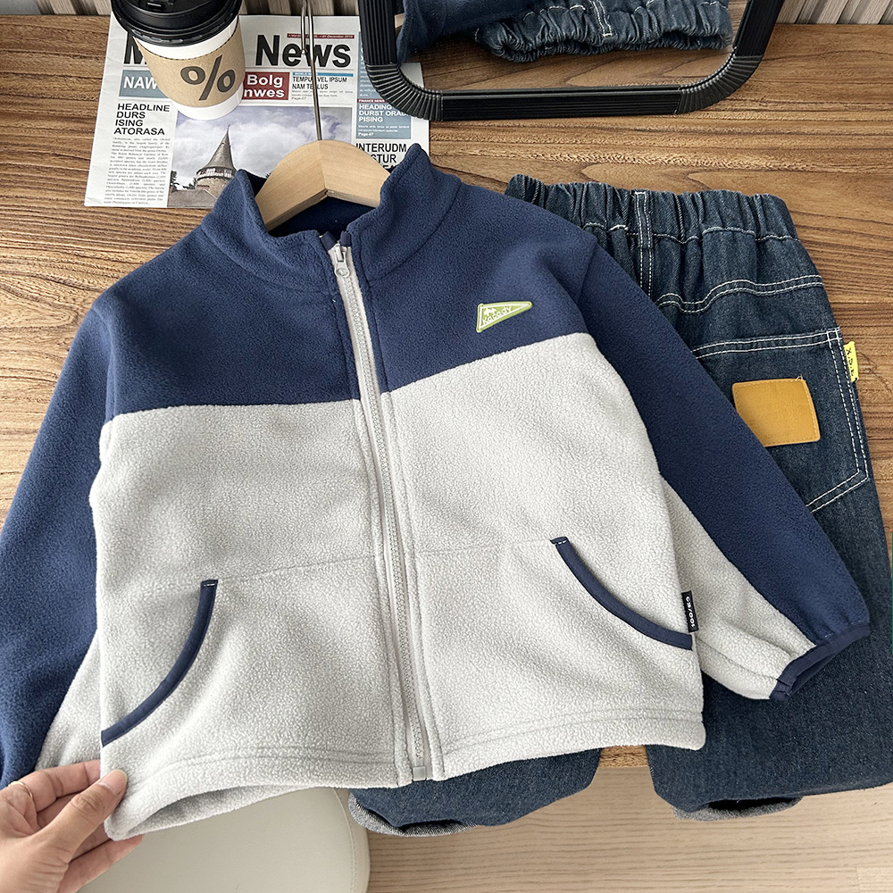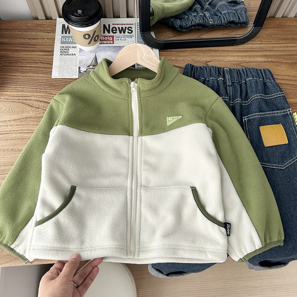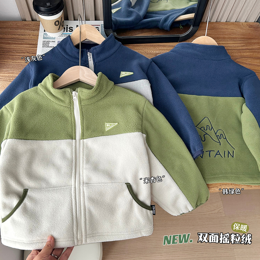 가을 2024 새로운 아동복 어린이 극지 양털 코트 소년과 어린이 컬러 대비 코트 도매 세대스토어 가기