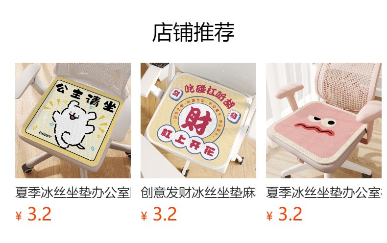 여름 간편한 케어 아이스 실크 쿠션 사무실 좌식 아티팩트 의자 지방 쿠션 학생 스툴 미끄럼 방지 쿠션스토어 가기