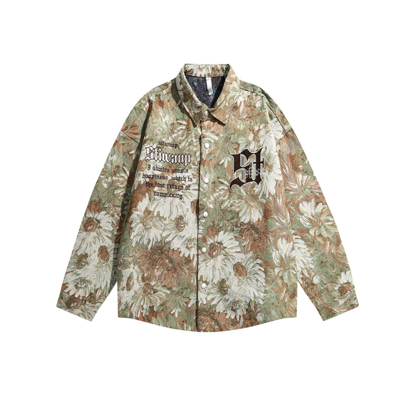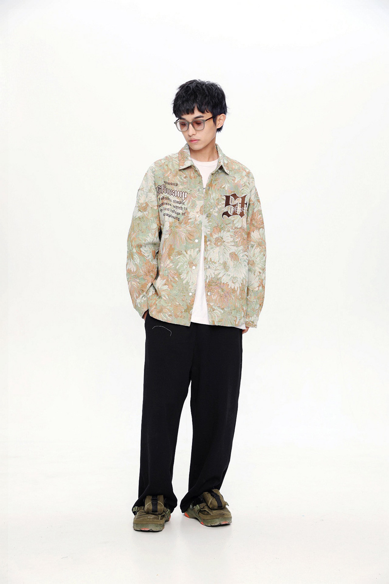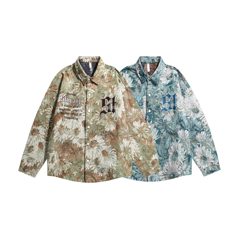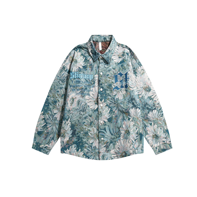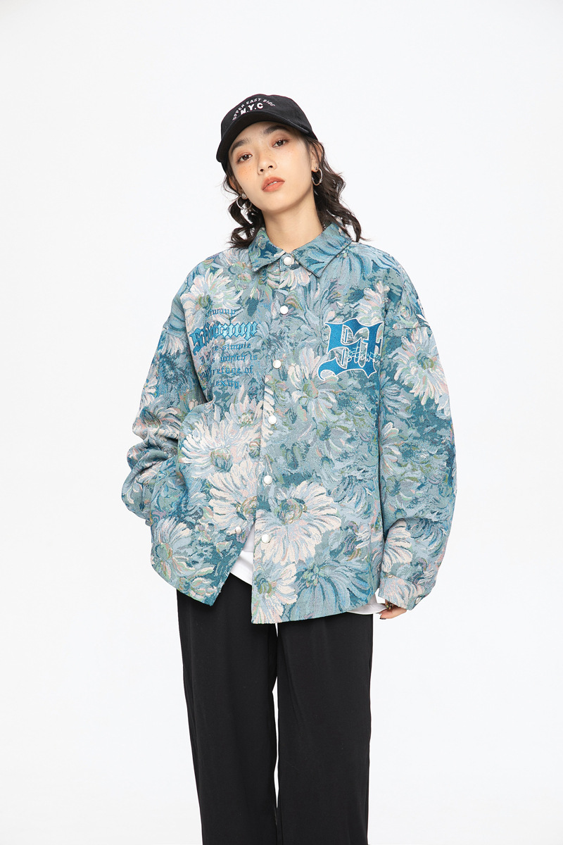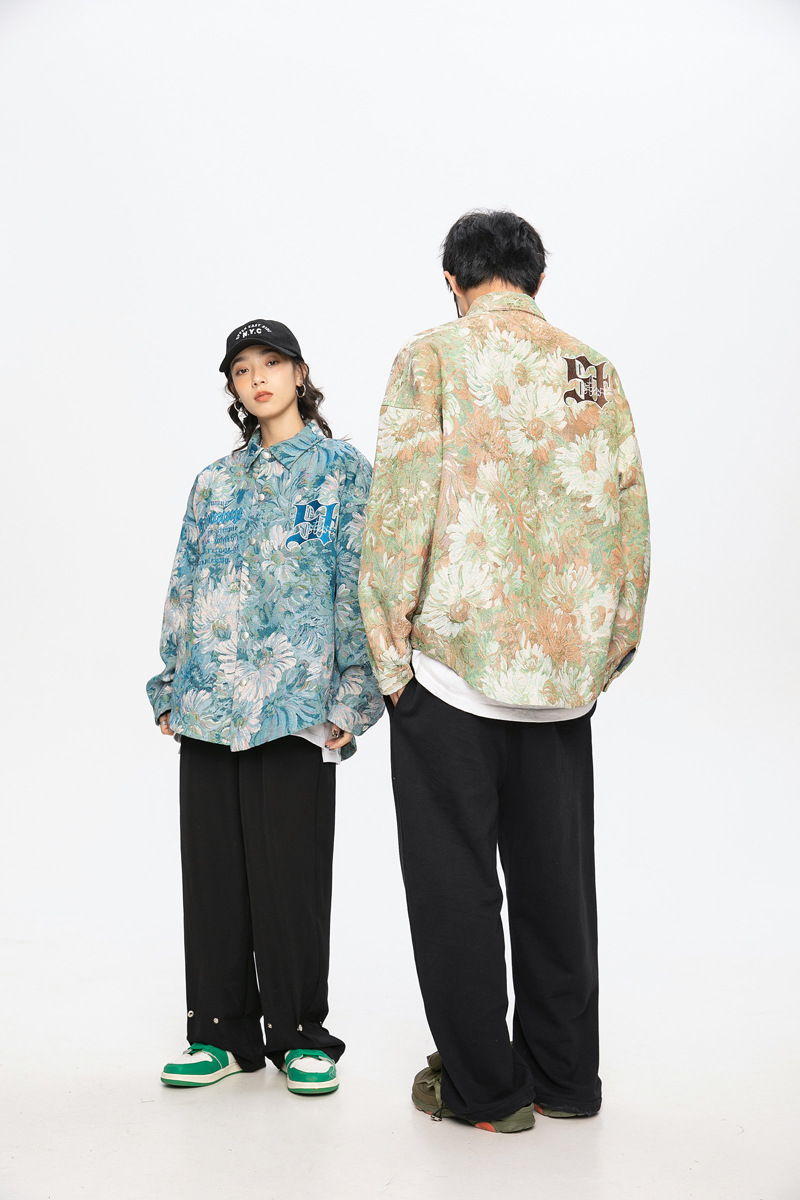 봄과 가을 전국 패션 디자인 센스 셔츠 남성 느슨한 편지 자수 미국 빈티지 유화 긴 소매 셔츠 여성용 코트